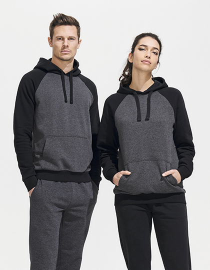 Fleece-Material mit geringer Schrumpfung (280), 80% Ringspun-Baumwolle / 20% Polyester, angerautes Futter, Außen: 100% Baumwolle2-farbigRaglan-ÄrmelKängurutasche an der VorderseiteRipp an Bündchen und SaumGefütterte Kapuze, mit Kordel verstellbarNackenbandKein LabelGeschnitten und genähtMaterial: Außen: 100% Baumwolle, Innen: 80% Baumwolle, 20% Polyester (Grey/Navy, Grey/Burgundy: 75% Baumwolle, 20% Polyester, 5% Viskose), (Charcoal Melange/Black: 60% Baumwolle, 40% Polyester)Grammatur: 280 g/m²Gewicht: 0.516Hergestellt nach: Faire Arbeitsbedingungen, Oeko-Tex 100, VeganVeredelung: Bestickung, Bedruckung, Beflockung