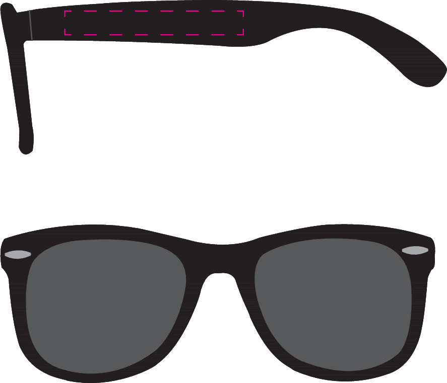 Sonnenbrille aus Kunststoff mit UV 400 Schutz. Die Farbe der Bügel und des Rahmens kann individuell kombiniert werden. Mindestmenge: 50 Stk.Compliance & Zertifizierungen: UV400✅Material: KunststoffVeredelungsposition 1: Rechter BügelTechnologie: TampondruckMaximale Farben: 4Durchmesser: 0Druckcode: P1Veredelungsposition 2: Linker BügelTechnologie: TampondruckMaximale Farben: 4Durchmesser: 0Druckcode: P1Veredelungsposition 3: GläserTechnologie: Vision-Film-DruckDurchmesser: 0Druckcode: VF