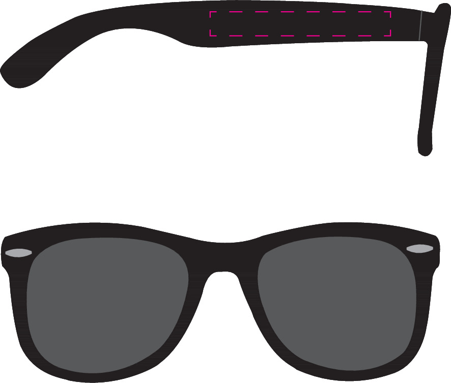 Sonnenbrille aus Kunststoff mit UV400 Schutz und matter Oberfläche.Compliance & Zertifizierungen: UV400✅Material: KunststoffVeredelungsposition 1: Rechter BügelTechnologie: TampondruckMaximale Farben: 4Durchmesser: 0Druckcode: P1Veredelungsposition 2: Linker BügelTechnologie: TampondruckMaximale Farben: 4Durchmesser: 0Druckcode: P1Veredelungsposition 3: GläserTechnologie: Vision-Film-DruckDurchmesser: 0Druckcode: VF