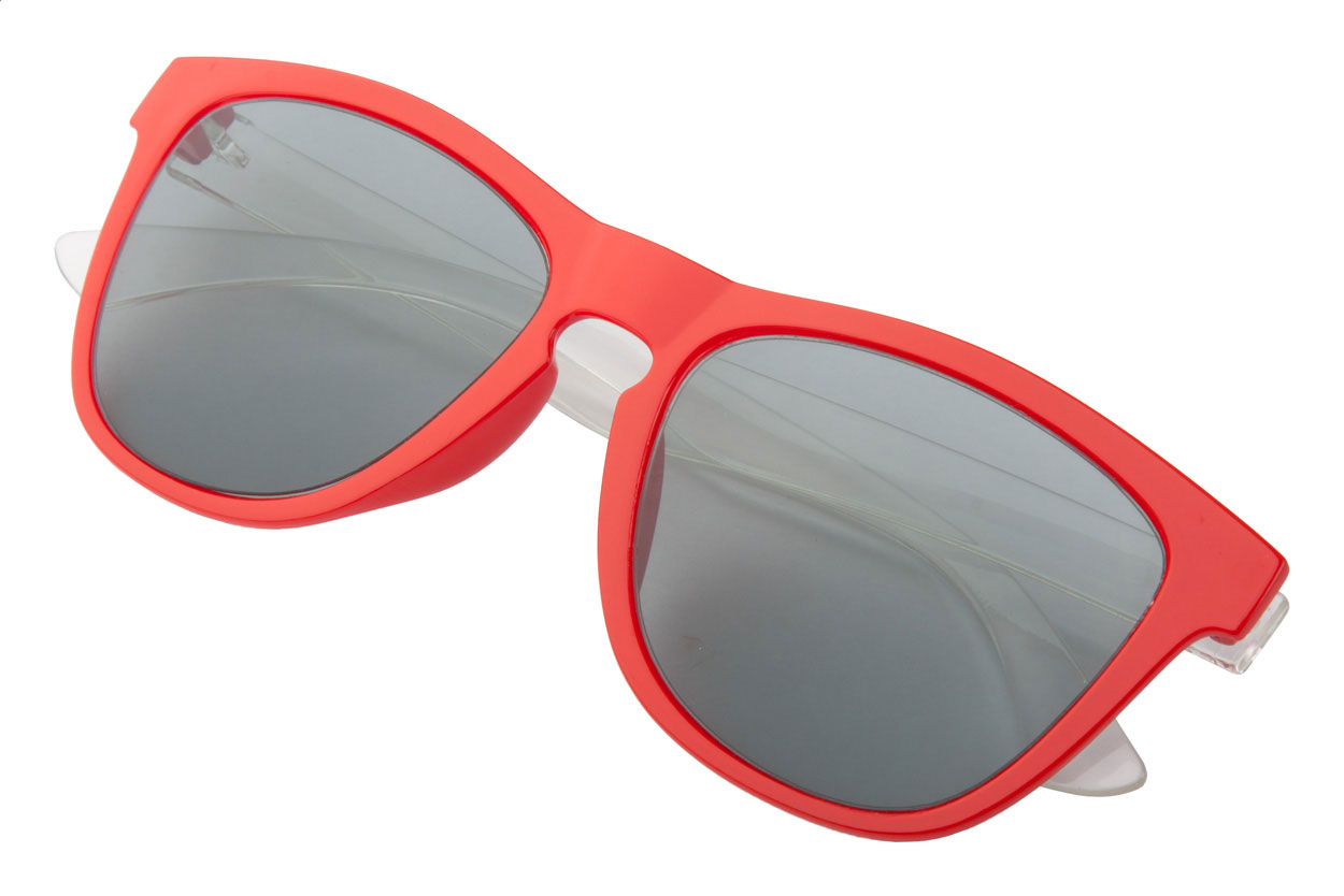 Sonnenbrille aus Kunststoff mit UV 400 Schutz. Die Farbe der Bügel und des Rahmens kann individuell kombiniert werden. Mindestmenge: 50 Stk.