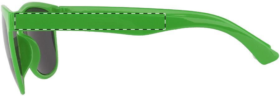 Modische Kinder-Sonnenbrille aus Kunststoff mit UV 400 Schutz.Compliance & Zertifizierungen: UV400✅Material: KunststoffVeredelungsposition 1: Rechter BügelTechnologie: TampondruckMaximale Farben: 4Durchmesser: 0Druckcode: P1Veredelungsposition 2: Linker BügelTechnologie: TampondruckMaximale Farben: 4Durchmesser: 0Druckcode: P1Veredelungsposition 3: GläserTechnologie: Vision-Film-DruckDurchmesser: 0Druckcode: VF