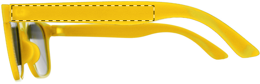 Sonnenbrille aus Kunststoff mit UV 400 Schutz. Die Farbe der Bügel und des Rahmens kann individuell kombiniert werden. Mindestmenge: 50 Stk.Compliance & Zertifizierungen: UV400✅Material: KunststoffVeredelungsposition 1: Rechter BügelTechnologie: TampondruckMaximale Farben: 4Durchmesser: 0Druckcode: P1Veredelungsposition 2: Linker BügelTechnologie: TampondruckMaximale Farben: 4Durchmesser: 0Druckcode: P1Veredelungsposition 3: GläserTechnologie: Vision-Film-DruckDurchmesser: 0Druckcode: VF