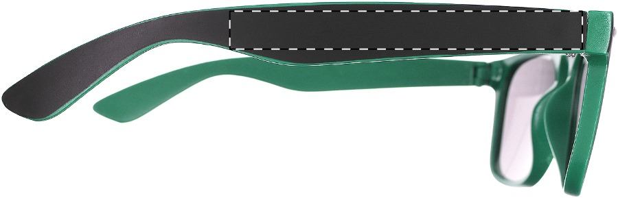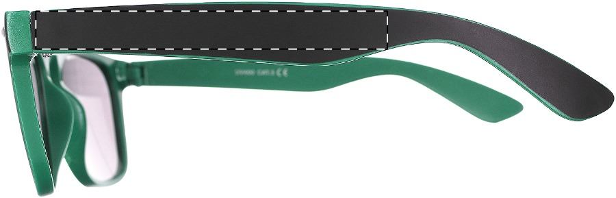 Sonnenbrille aus Kunststoff mit UV 400 Schutz. Die Farbe der Bügel und des Rahmens kann individuell kombiniert werden. Mindestmenge: 50 Stk.Compliance & Zertifizierungen: UV400✅Material: KunststoffVeredelungsposition 1: Rechter BügelTechnologie: TampondruckMaximale Farben: 4Durchmesser: 0Druckcode: P1Veredelungsposition 2: Linker BügelTechnologie: TampondruckMaximale Farben: 4Durchmesser: 0Druckcode: P1Veredelungsposition 3: GläserTechnologie: Vision-Film-DruckDurchmesser: 0Druckcode: VF
