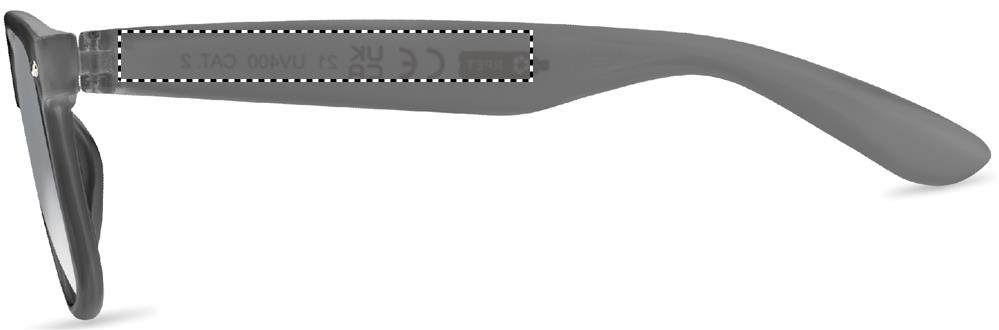 Klassische Sonnenbrille. Rahmen aus RPET. UV400-Schutz.Material: RPETMaße: 14x4.5x13.5cmGewicht: 0.028 kgVeredelung: Bestickung, Bedruckung, BeflockungHandling/Farbcodes: A/06, 29, 50, 03, 22, 23, 24, 25, 27Druckposition: RIGHT LEGDruckmaße: 65 x 8 mmDrucktechniken: DL, DO1, P2Druckposition: LEFT LEGDruckmaße: 65 x 8 mmDrucktechniken: DL, DO1, P2
