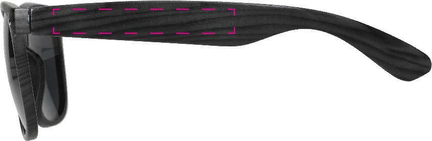 Stylische Sonnenbrille in Holz-Optik. Der Rahmen ist aus leichtem PC. Die getönten Gläser sind aus Acryl und haben einen UV-400 Schutz. Leicht und angenehm zu tragen. Entspricht den Anforderungen der EU-Verordnung 2016/425, Klasse 1 und der Norm EN ISO 12312-1:2022 (DIN EN ISO 12312-1:2023-07) . Filterkategorie 3.Material: KunststoffMaße: 145 x 150 x 220 x Ø: 0,00 mmGewicht: 25 gDruckmöglichkeitenPosition 1: Auf linken BügelDruckart: TampondruckDruckgruppe: TAMBMaximale Farben: 5Breite: 60 mmHöhe: 8 mmPosition 2: Auf rechten BügelDruckart: TampondruckDruckgruppe: TAMBMaximale Farben: 5Breite: 60 mmHöhe: 8 mm