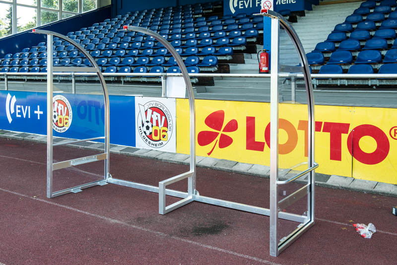 Die Teilverschweißte Betreuerkabine Eurochamp bietet dem kleinen Geldbeutel die Möglichkeit eine hochwertige Spielerkabine zu erwerben.