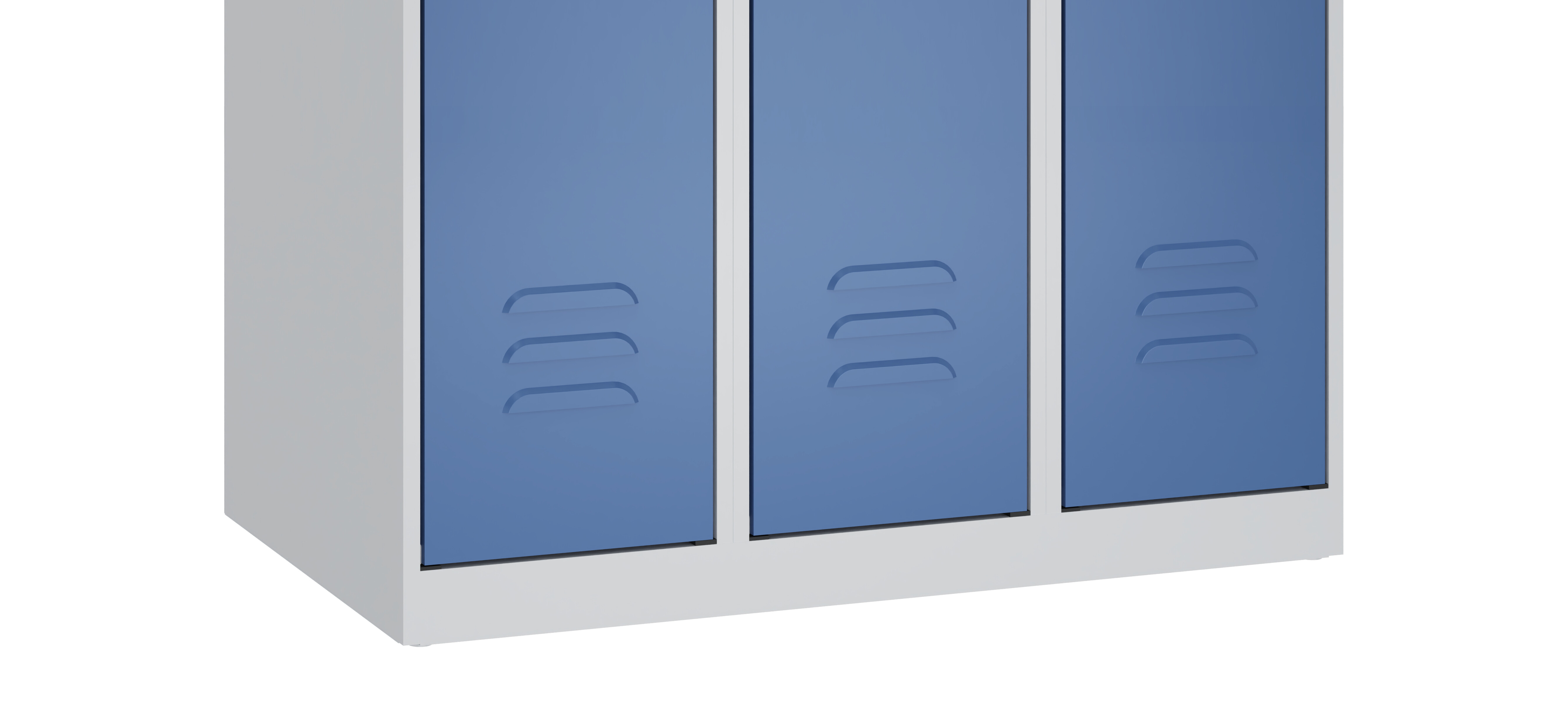 Schließfachschrank Classic PLUS, 1 Abteil mit 3 Fächern, Abteilbreite 300 mm, Korpus aus stabiler Stahlkonstruktion mit hochwertiger Einbrennbeschichtung für hohe UV- und Korrosionsbeständigkeit, mit Bodengleitern als praktischer Schrank- und Fußbodenschutz, Türöffnungen 110 Grad, Türaufhängung rechts, Stahl-Türen mit Soft-Anschlag und geschlossenen Seitenprofilen für hohe Stabilität, Türaufhängung in stabilen Drehbolzen, 3 Zylinderschlösser mit 2 Schlüsseln, Schließkreis bis 1000 verschiedene Schließungen, Maße (H x B x T): 1850 x 300 x 500 mm, Korpus: RAL 7035 Lichtgrau, Türen Stahl: RAL 5023 Fernblau, Gewicht: 22 kgProduktvorteile:Geschlossene Tür-Seitenprofile für hohe VerwindungssteifigkeitPraktische Fächerschränke zum Wegschließen persönlicher Dinge, für mehr Ordnung und Sicherheit