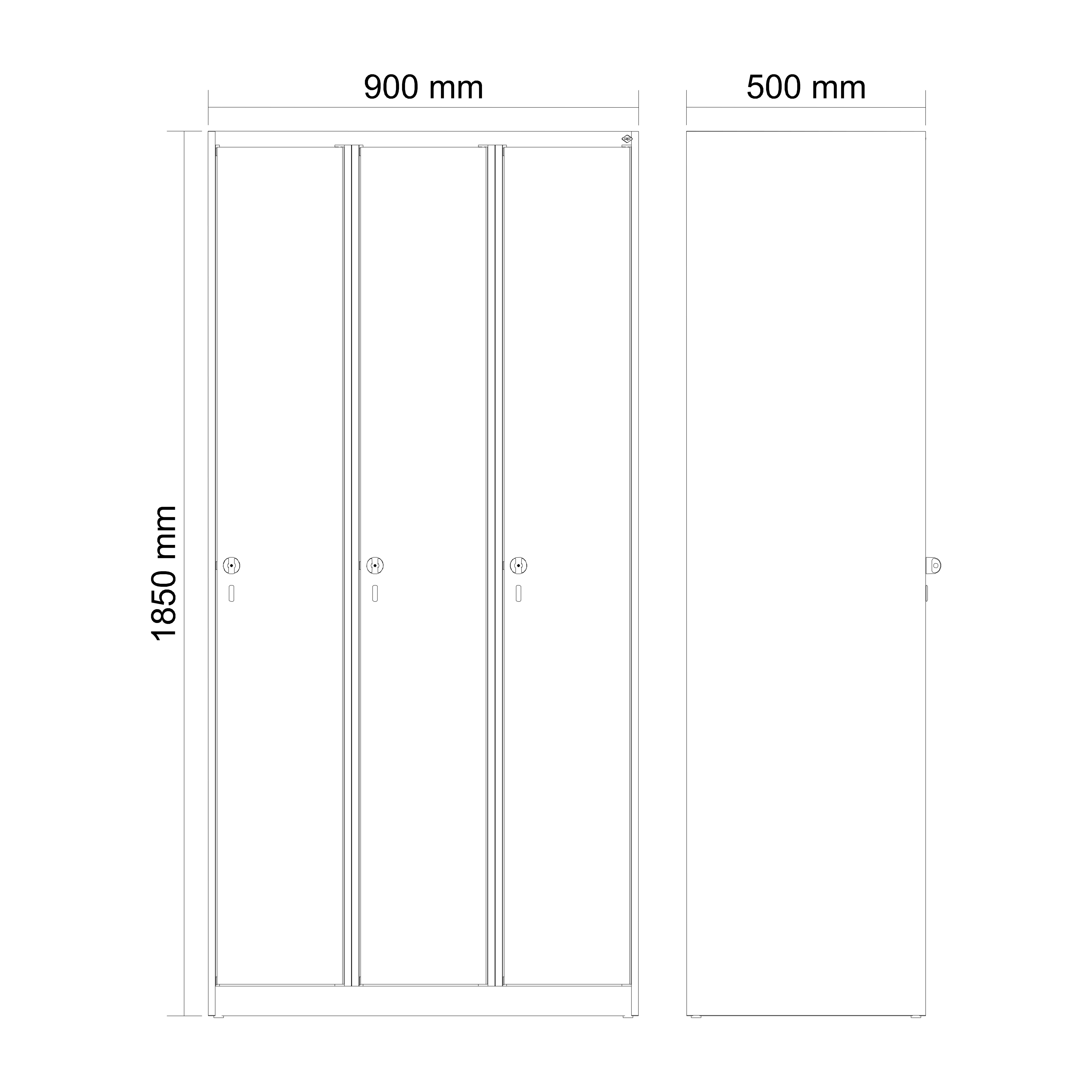 Spind Classic Plus, 3 Abteile, 1850x900x500mm