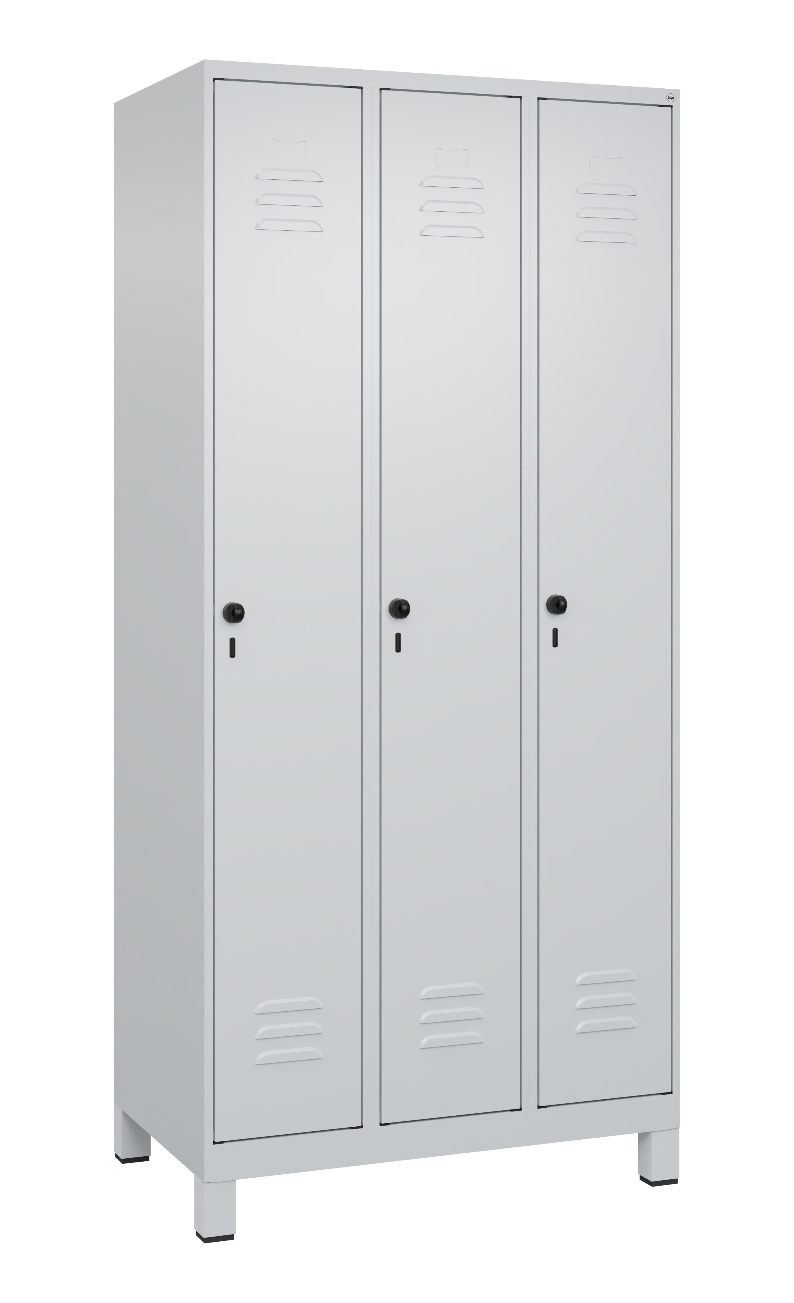 Spind Classic Plus, Füße, 3 Abteile, 1950x900x500mm RAL 7035 Lichtgrau RAL 7035 Lichtgrau