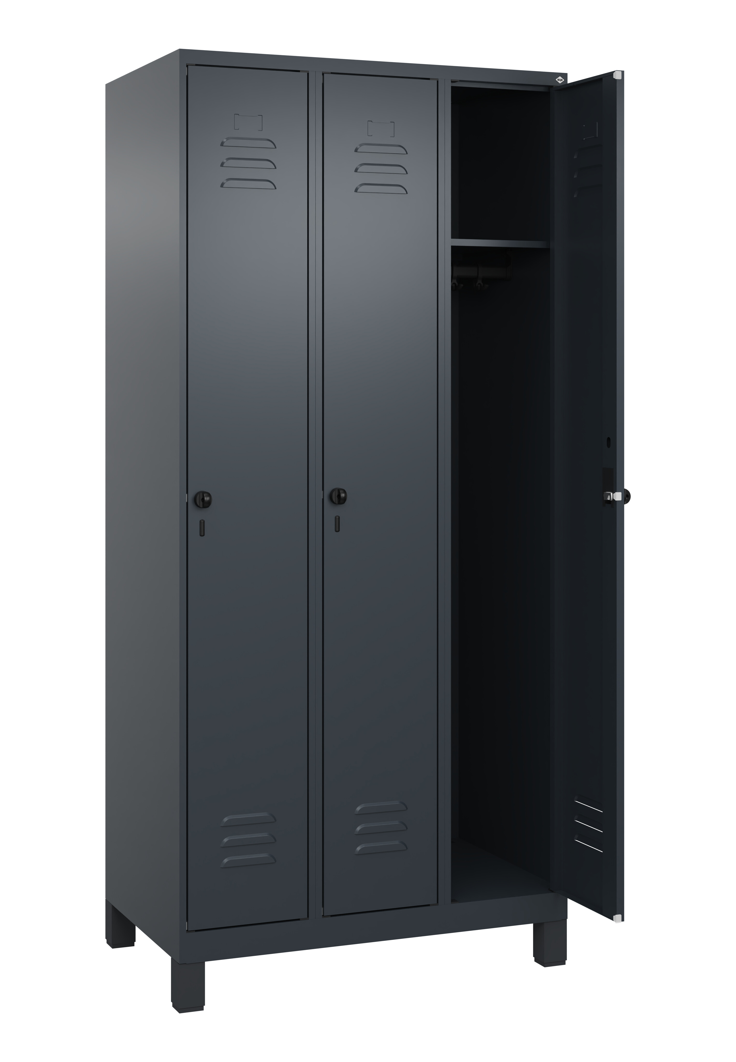 Spind Classic Plus, Füße, 3 Abteile, 1950x900x500mm RAL 7016 Anthrazitgrau RAL 7016 Anthrazitgrau
