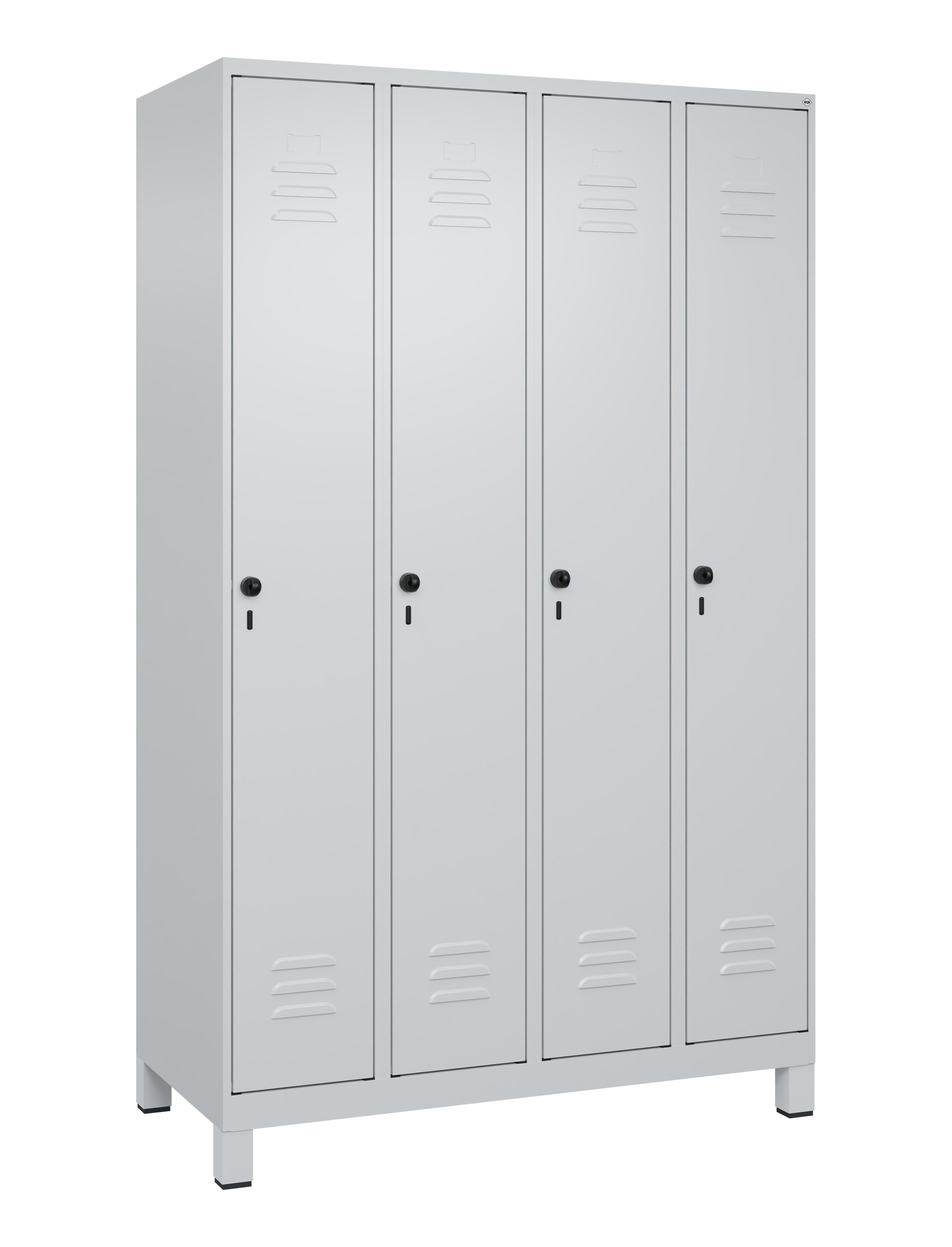 Spind Classic Plus, Füße, 4 Abteile, 1950x1200x500mm RAL 7035 Lichtgrau RAL 7035 Lichtgrau