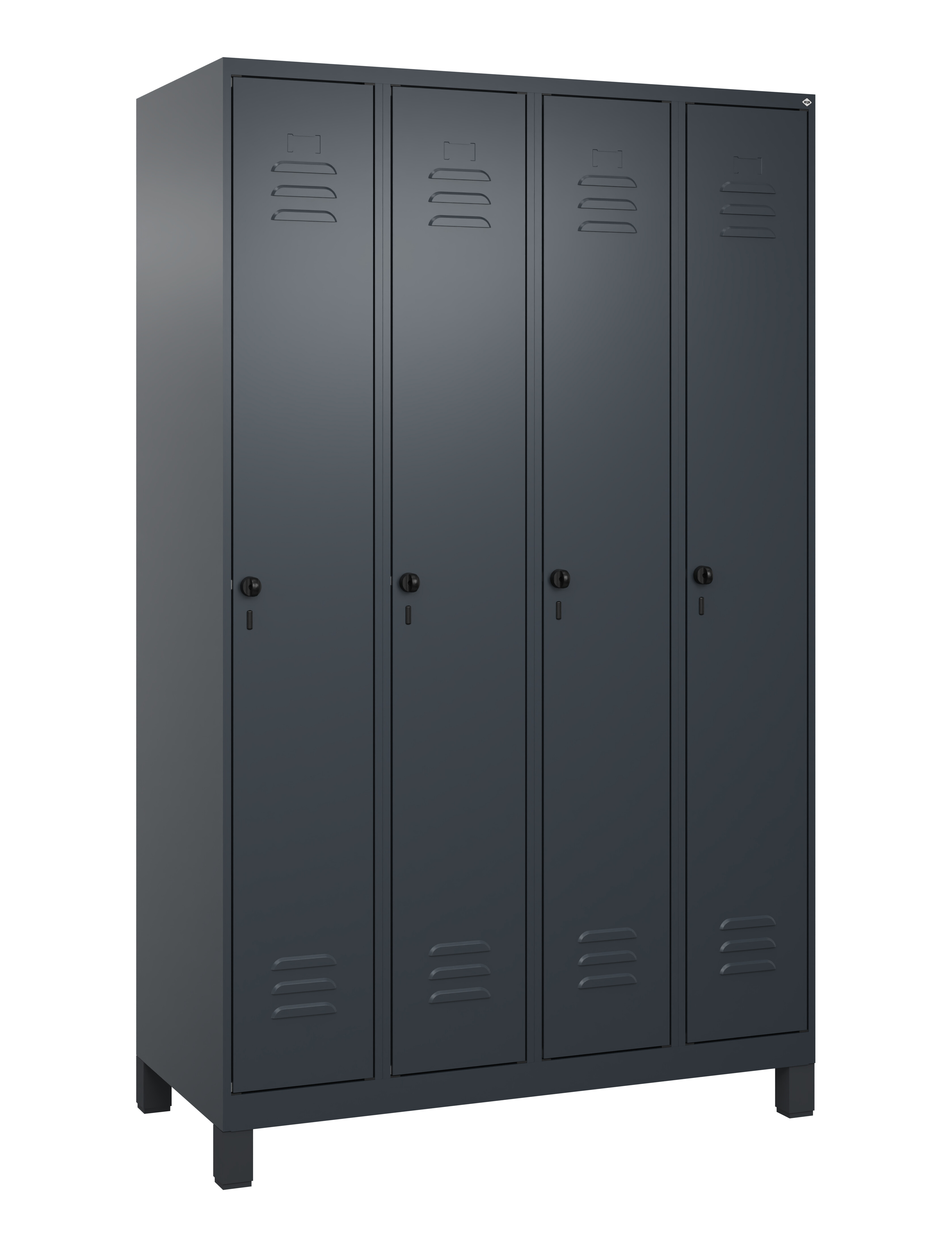 Spind Classic Plus, Füße, 4 Abteile, 1950x1200x500mm RAL 7016 Anthrazitgrau RAL 7016 Anthrazitgrau