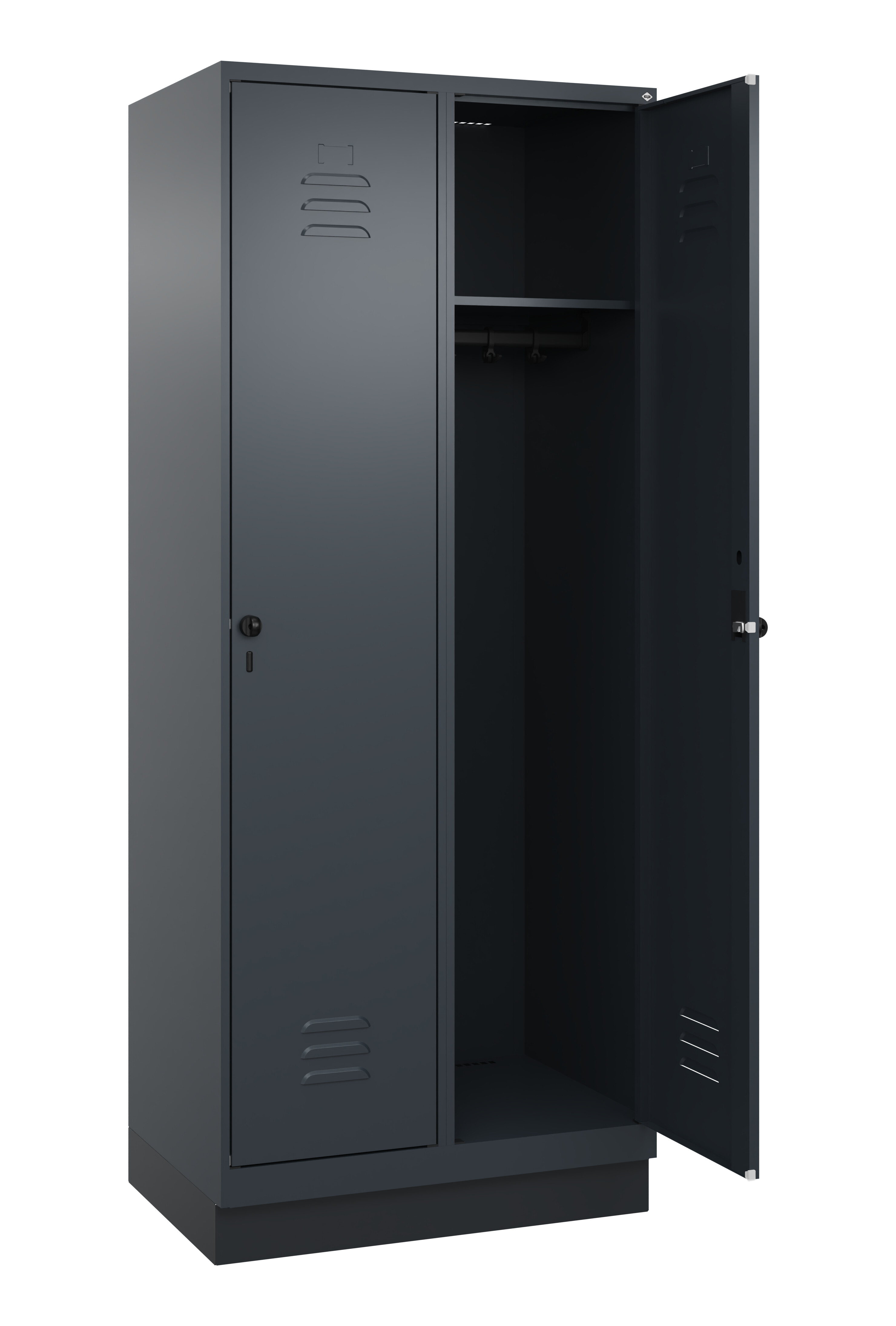 Spind Classic Plus, Sockel, 2 Abteile, 1950x800x500mm RAL 7016 Anthrazitgrau RAL 7016 Anthrazitgrau