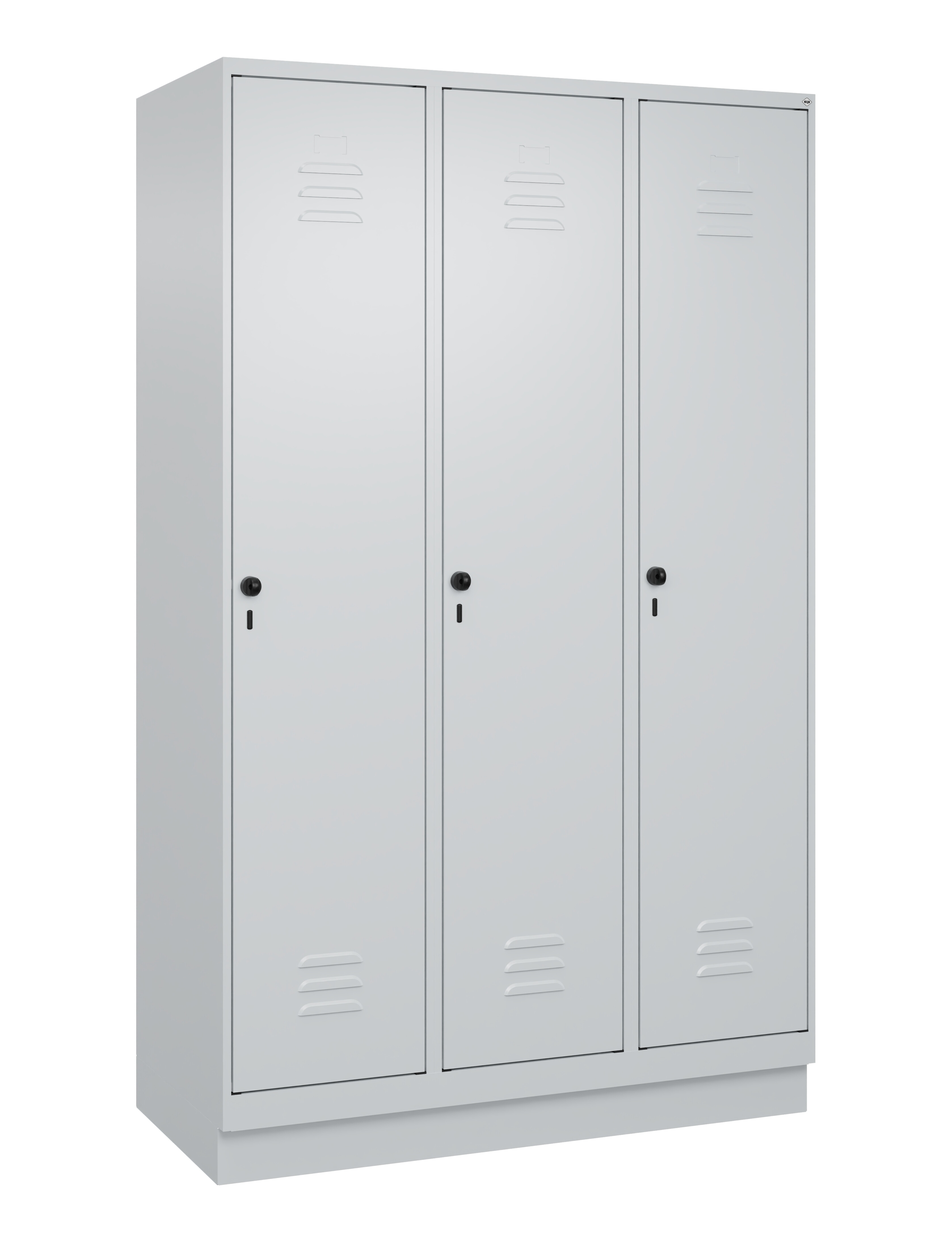Spind Classic Plus, Sockel, 3 Abteile, 1950x1200x500mm RAL 7035 Lichtgrau RAL 7035 Lichtgrau