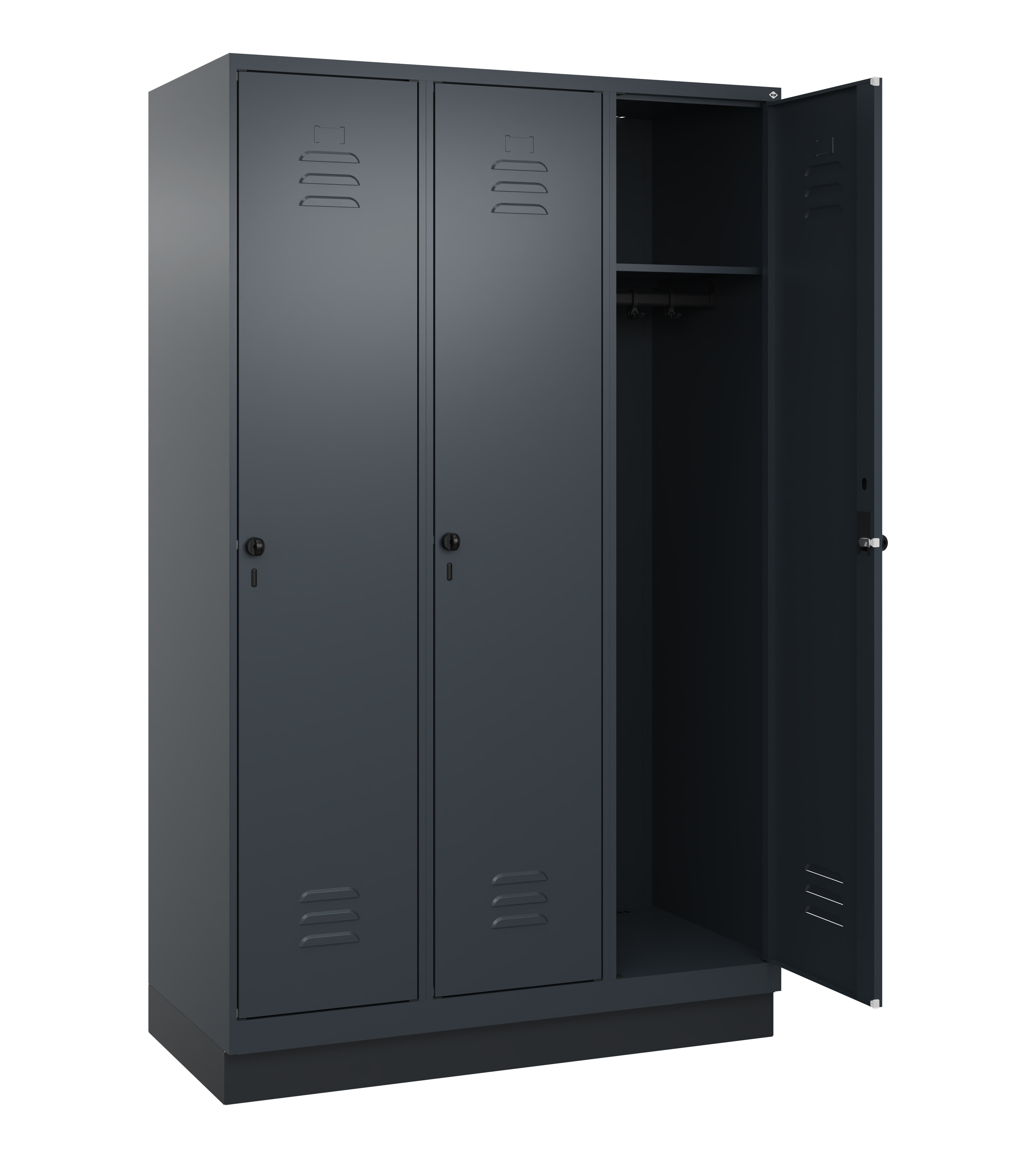 Spind Classic Plus, Sockel, 3 Abteile, 1950x1200x500mm RAL 7016 Anthrazitgrau RAL 7016 Anthrazitgrau