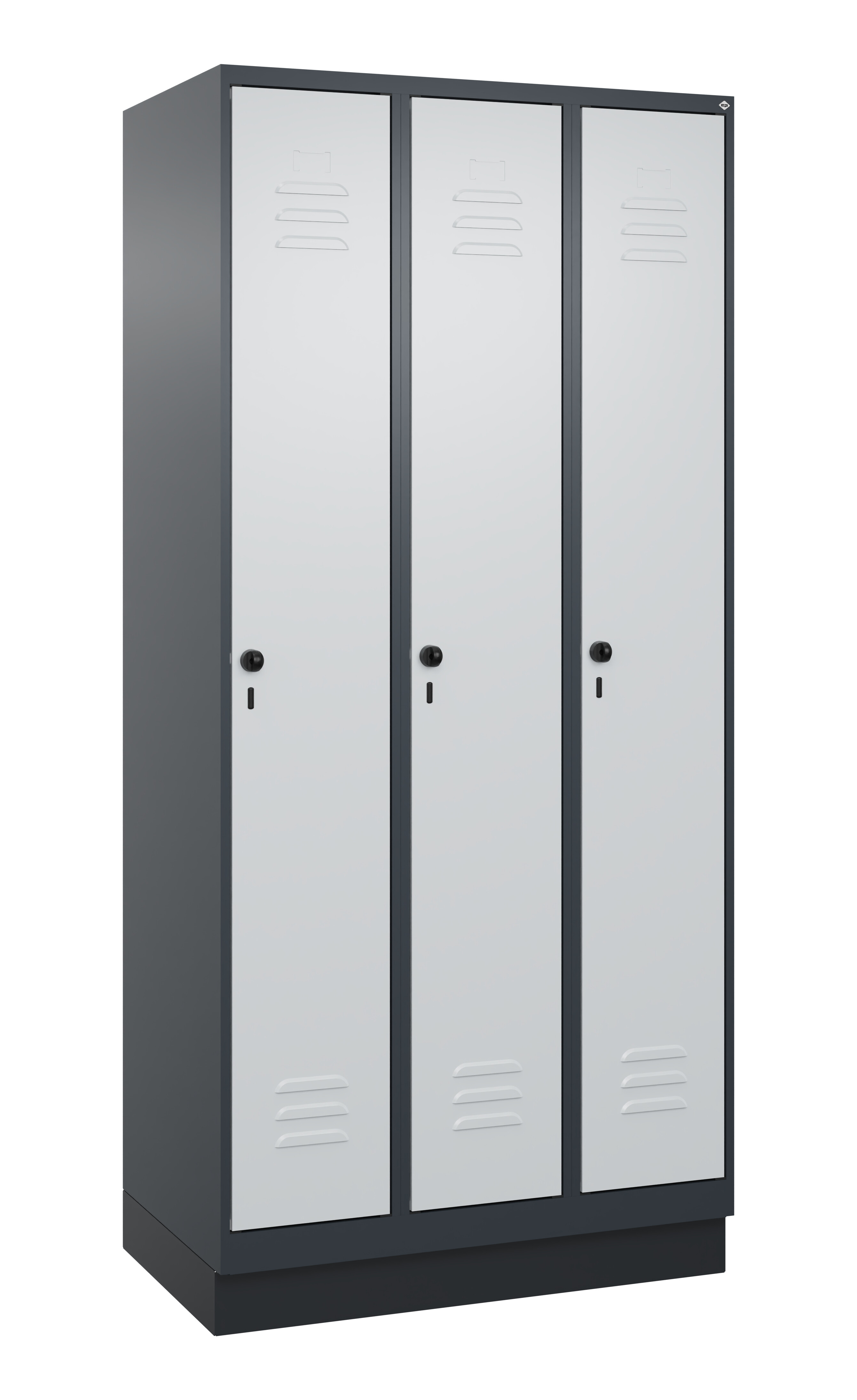 Spind Classic Plus, Sockel, 3 Abteile, 1950x900x500mm RAL 7035 Lichtgrau RAL 7016 Anthrazitgrau