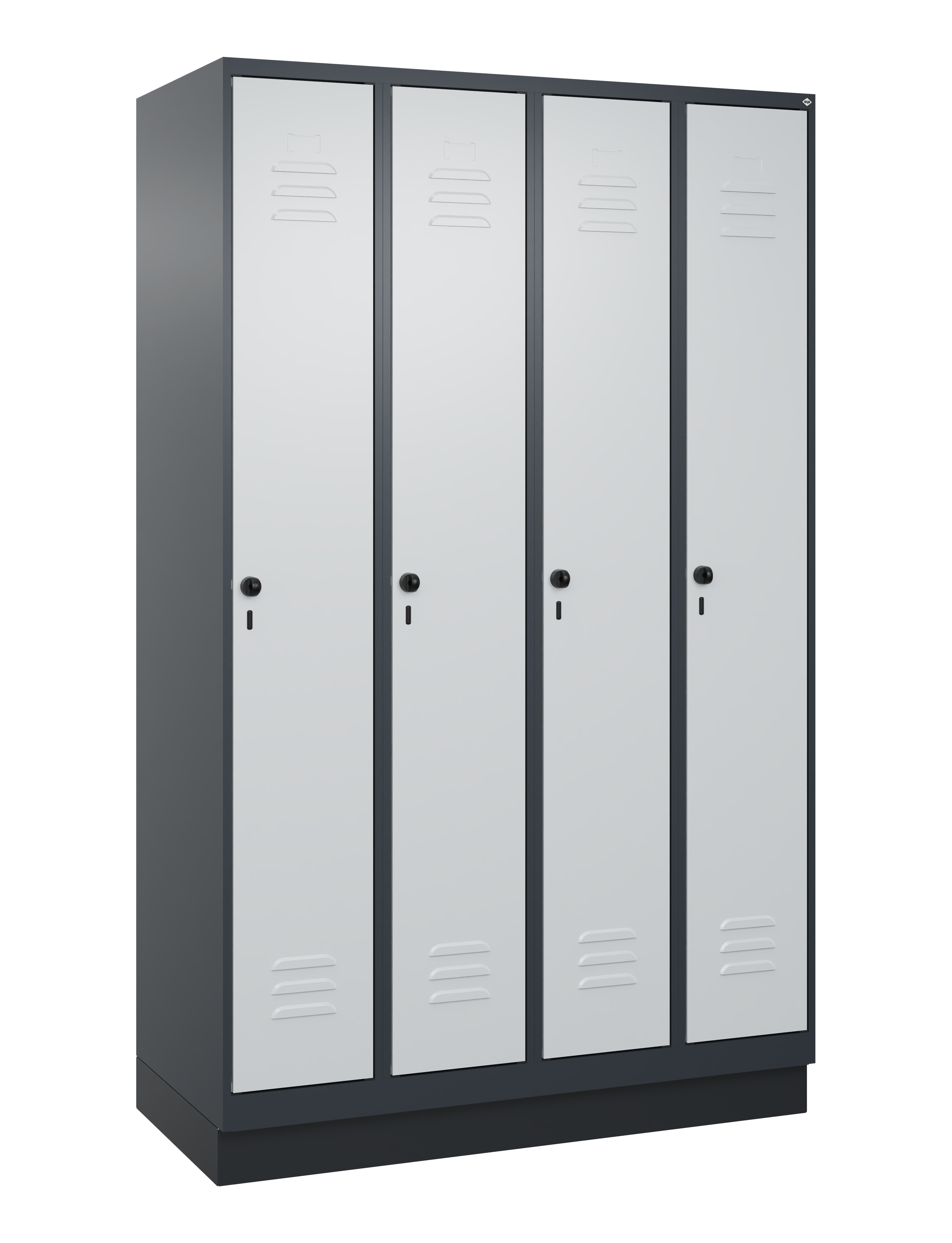 Spind Classic Plus, Sockel, 4 Abteile, 1950x1200x500mm RAL 7035 Lichtgrau RAL 7016 Anthrazitgrau