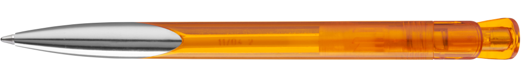 Drehkugelschreiber mit transparent glänzendem Gehäuse und Spitze glanzverchromt.Druckbereich: Auf dem Clip 35mm x 6mm Tampondruck (T), in Clipverlängerung 35mm x 20mm Siebdruck (S), gegenüber vom Clip 35mm x 13mm Siebdruck (S), seitlich vom Clip 35mm x 13mm Siebdruck (S)