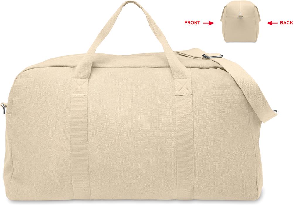 Sport- oder Reisetasche aus recyceltem Material 450 g/m² (60 % recycelte Baumwolle und 40 % recycelter Polyester) mit abnehmbarem und verstellbarem Schultergurt aus Baumwolle.