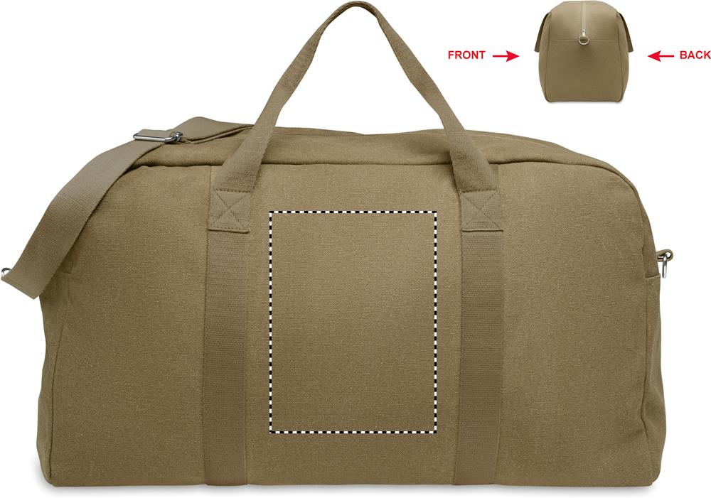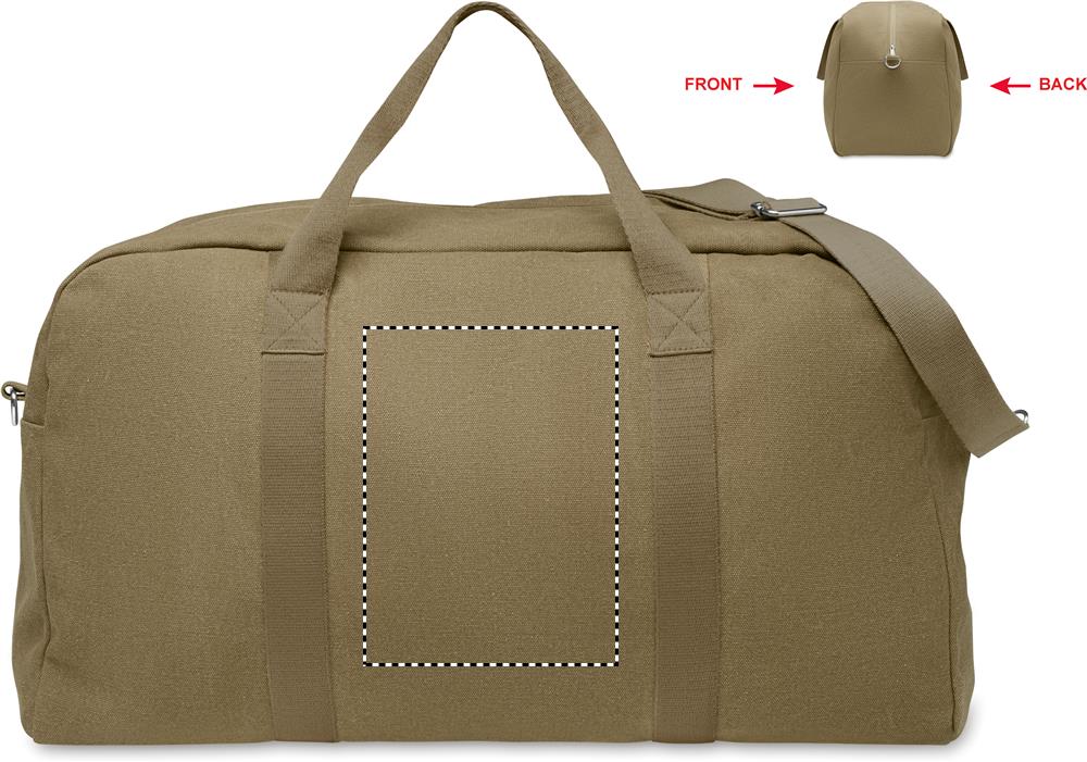 Sport- und Reisetasche mit Reißverschluss-Fronttasche. RPET 190T Polyester. Volumen: 20 l.Material: RPETMaße: 48x23cmGewicht: 0.08 kgVeredelung: Bestickung, Bedruckung, BeflockungHandling/Farbcodes: Z/03, 04, 15, 37, 60Druckposition: POCKETDruckmaße: 130 x 70 mmDrucktechniken: TD1, TR, S4, T1Druckposition: FRONT UPPERDruckmaße: 150 x 70 mmDrucktechniken: S4, T1, TD1, TRDruckposition: BACKDruckmaße: 150 x 120 mmDrucktechniken: S4, T1, TD1, TRDruckposition: RIGHTDruckmaße: 120 x 120 mmDrucktechniken: S4, T1, TD1, TRDruckposition: LEFTDruckmaße: 120 x 120 mmDrucktechniken: S4, T1, TD1, TR