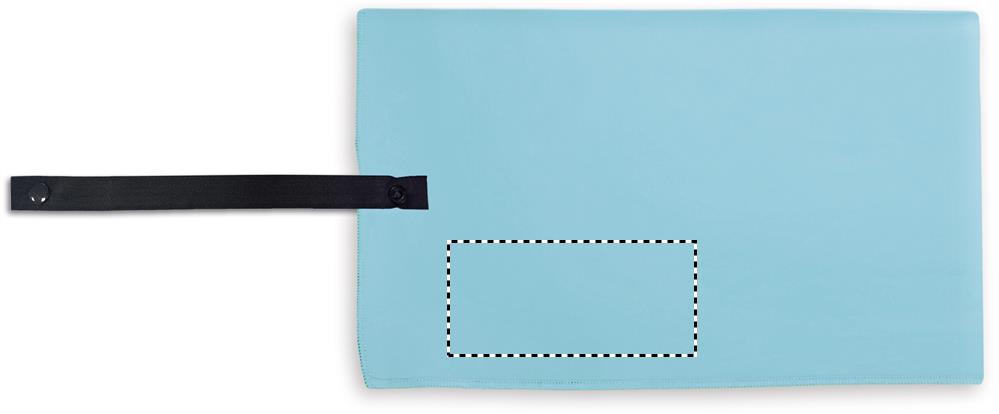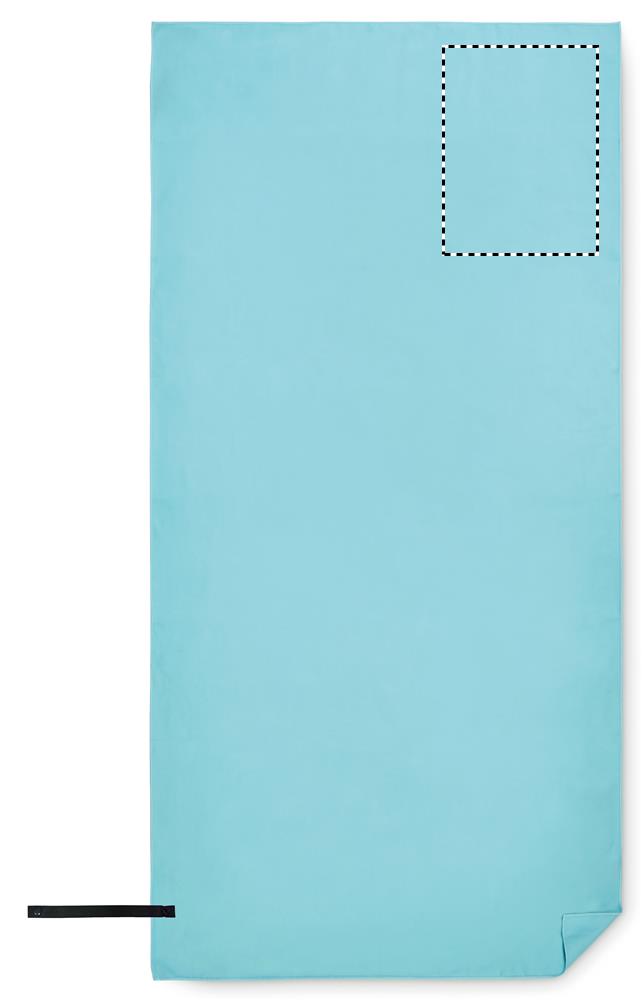 Sport- oder Strandtuch aus samtiger Mikrofaser 200 g/m². Gurt mit Druckknopf.