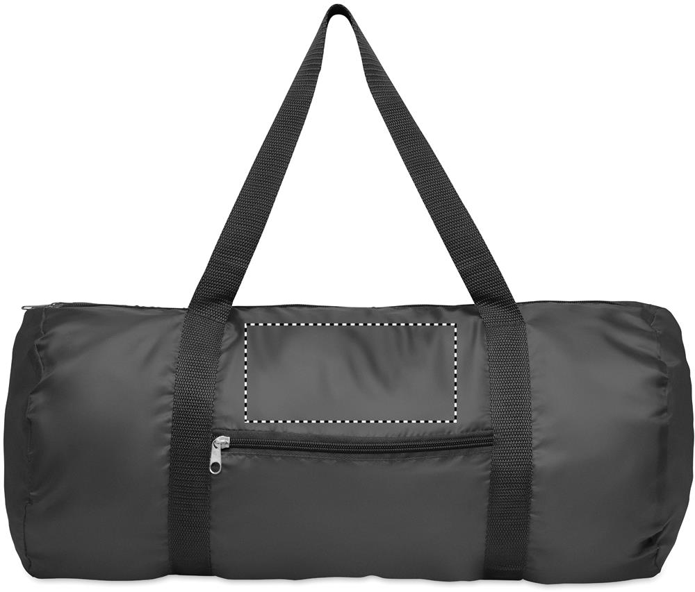 Sport- und Reisetasche mit Reißverschluss-Fronttasche. RPET 190T Polyester. Volumen: 20 l.Material: RPETMaße: 48x23cmGewicht: 0.08 kgVeredelung: Bestickung, Bedruckung, BeflockungHandling/Farbcodes: Z/03, 04, 15, 37, 60Druckposition: POCKETDruckmaße: 130 x 70 mmDrucktechniken: TD1, TR, S4, T1Druckposition: FRONT UPPERDruckmaße: 150 x 70 mmDrucktechniken: S4, T1, TD1, TRDruckposition: BACKDruckmaße: 150 x 120 mmDrucktechniken: S4, T1, TD1, TRDruckposition: RIGHTDruckmaße: 120 x 120 mmDrucktechniken: S4, T1, TD1, TRDruckposition: LEFTDruckmaße: 120 x 120 mmDrucktechniken: S4, T1, TD1, TR