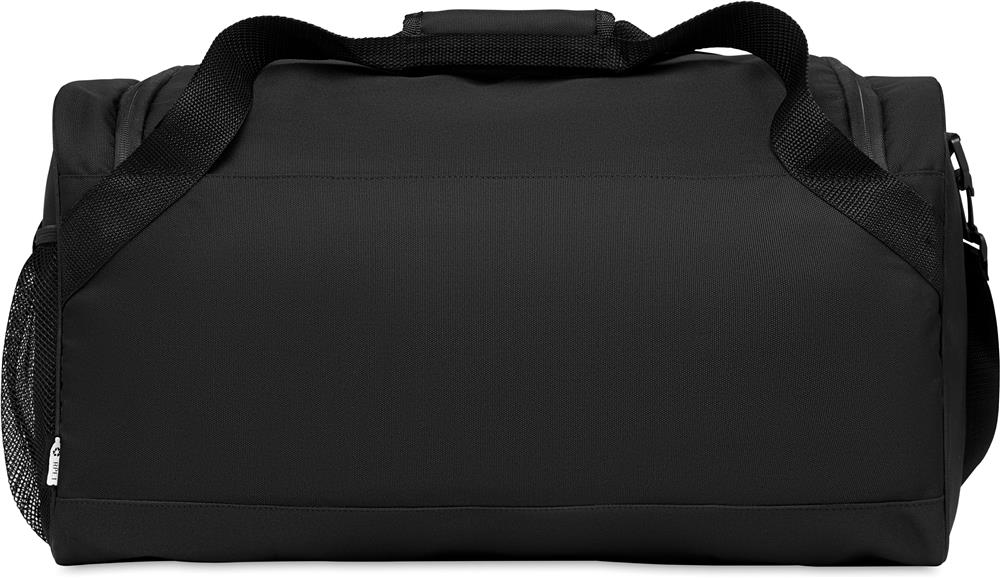 Sport- oder Reisetasche mit Reißverschluss-Fronttasche, Innentasche und verstellbarem, abnehmbarem Schultergurt. 600D RPET .