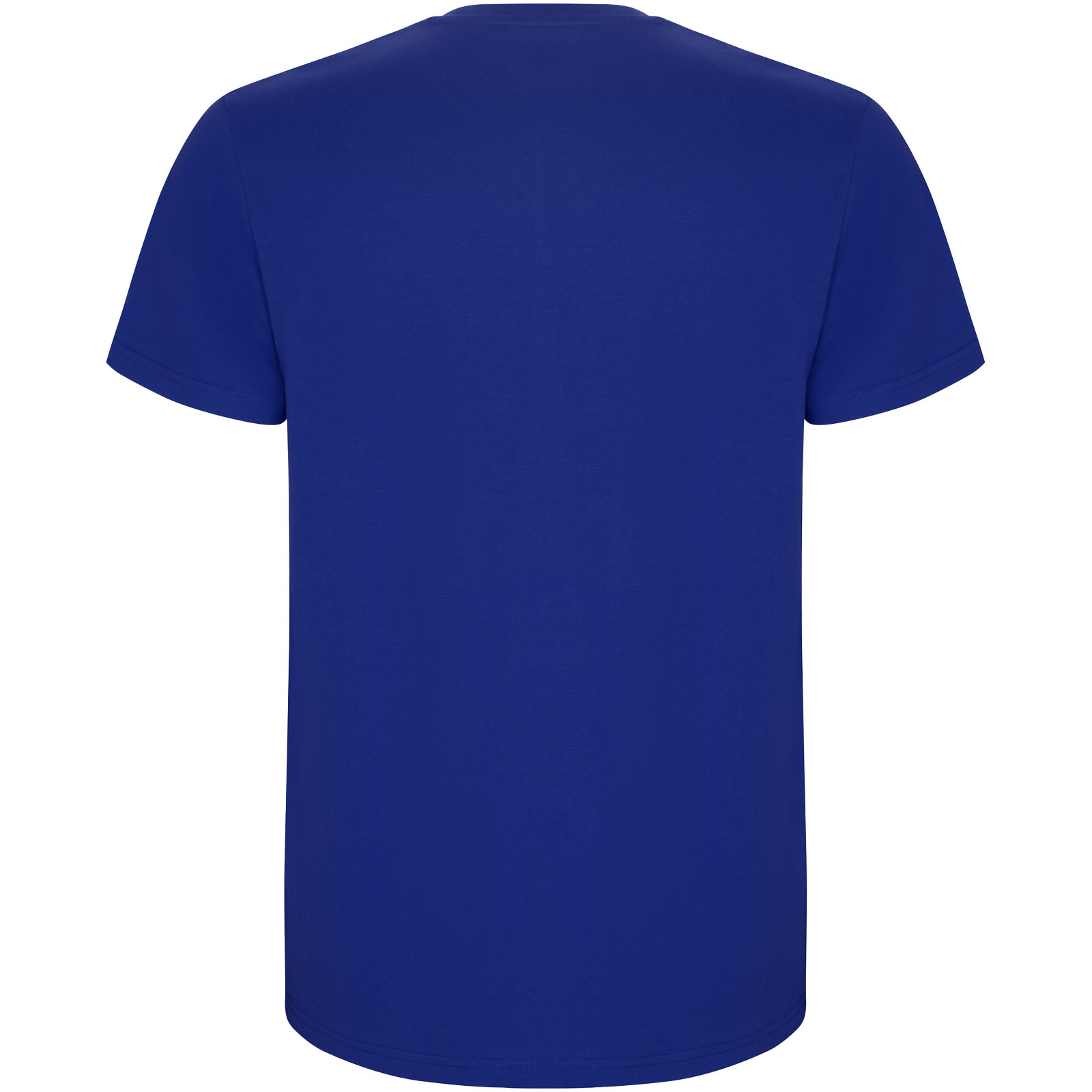 Kurzärmeliges T-Shirt aus Bio-Baumwolle. 1×1 gerippter Rundhalsausschnitt. Verstärkte und verdeckte Nähte am Kragen. Herausnehmbares Etikett.Besonderheiten:- Geschlecht: Männlich- OEKO-TEX®- SMETAMaterial: Single jersey Strick 100% Bio Baumwolle, 175 g/m2Grammatur: 175 g/m2Standard-Druck---------------Druckart: SiebdruckDruckposition: linke BrustDruckgröße: 110 x 110 mm mm (BxH)Druckfarben maximal: 5Zusätzliche Informationen: Schauen Sie bitte vor der Bestellung in die Roly Größentabelle. Roly folgt den spanischen Größen, die eine eher slim-fit Passform haben.Suchwörter: roly,
