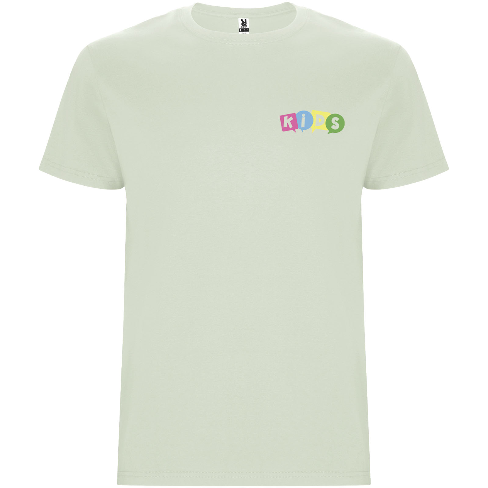 Kurzärmeliges T-Shirt mit doppellagigem Rundhalsausschnitt aus Elasthan, hergestellt aus schlauchförmigem Material. Verstärkte und verdeckte Nähte am Kragen. Herausnehmbares Etikett. Das Modell ist 120 cm groß und trägt Größe 5/6.Besonderheiten:- Geschlecht: Kinder- OEKO-TEX®- SMETAMaterial: Single jersey Strick 100% Baumwolle, 155 g/m2Grammatur: 155 g/m2Standard-Druck---------------Druckart: SiebdruckDruckposition: linke BrustDruckgröße: 80 x 40 mm mm (BxH)Druckfarben maximal: 5Zusätzliche Informationen: Schauen Sie bitte vor der Bestellung in die Roly Größentabelle. Roly folgt den spanischen Größen, die eine eher slim-fit Passform haben.Suchwörter: roly, t-shirt, tshirt, t shirt, t-shirts, tshirts, t shirts, t shirts