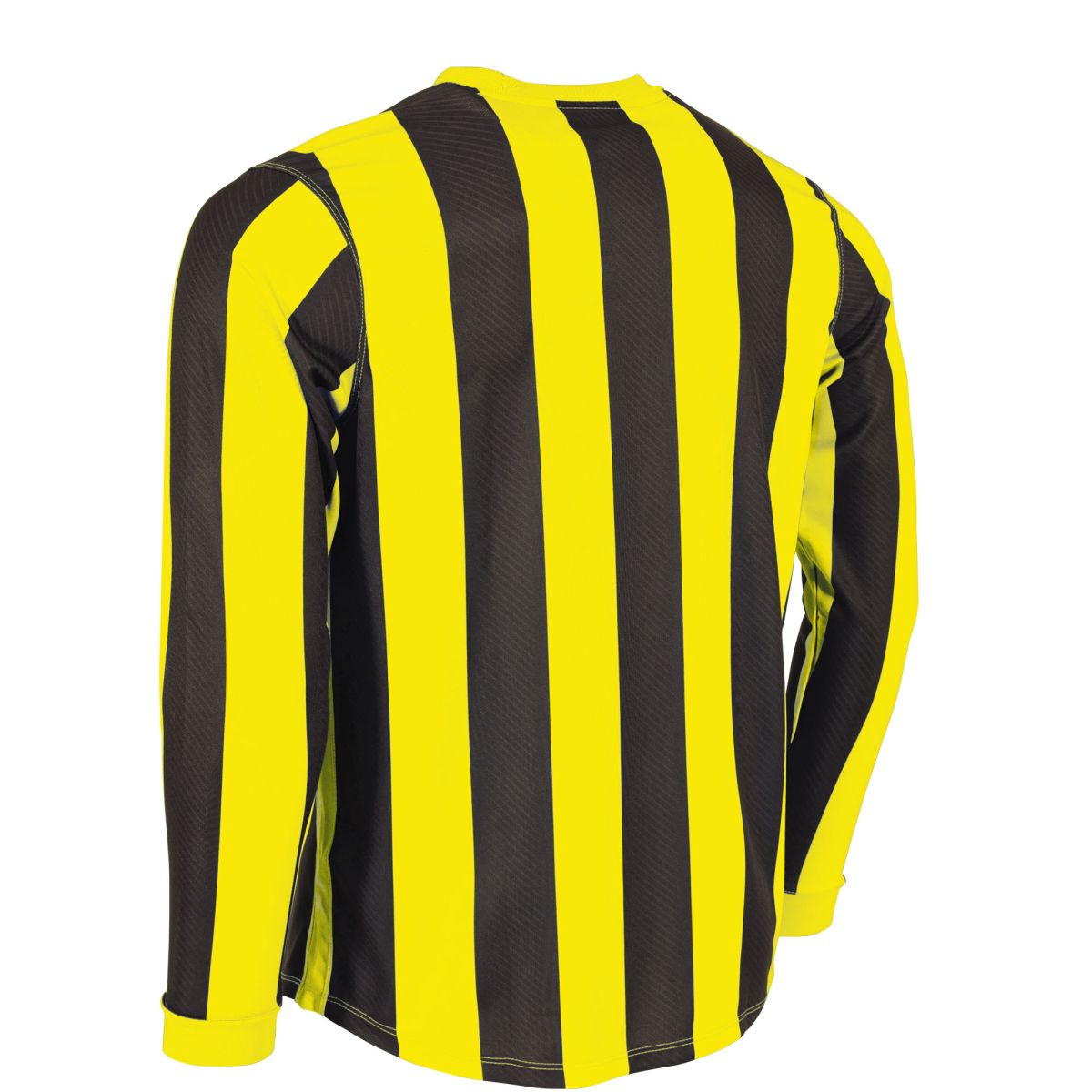 Das Stanno Aspire Langarm Trikot besteht aus 100% recyceltem Polyester mit ClimaTec-Finish und verfügt über ein sublimiertes Muster mit vertikalen Streifen. Auf der Vorderseite des Trikots befindet sich eine 20cm hohe Sponsorenfläche. Das Trikot verfügt über Stanno-Logos und eine Mesh-Struktur, die für einen optimalen Feuchtigkeitstransport sorgt. Das Shirt hat lange Ärmel mit Rippbündchen und doppelte Nähte, die es extra widerstandsfähig machen.