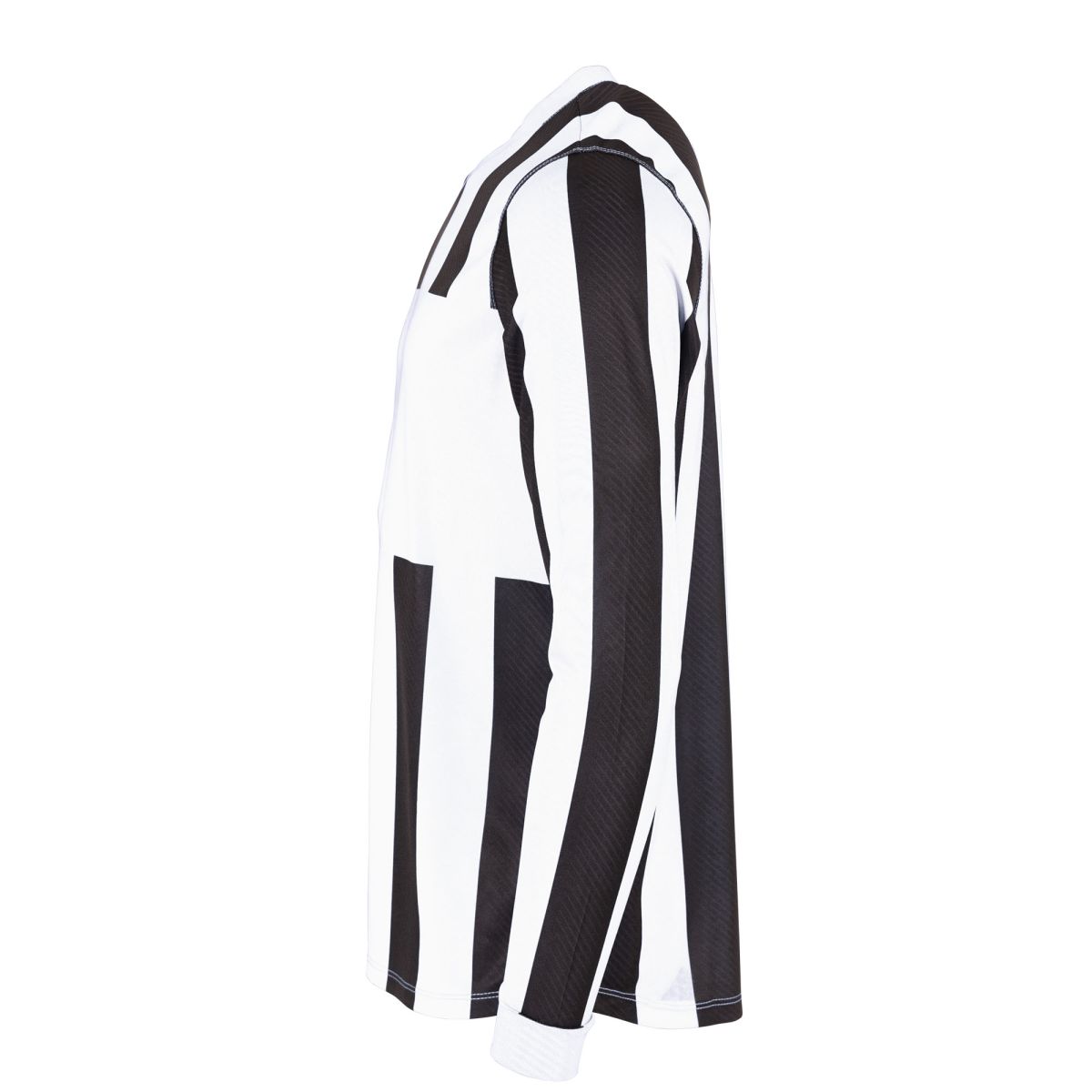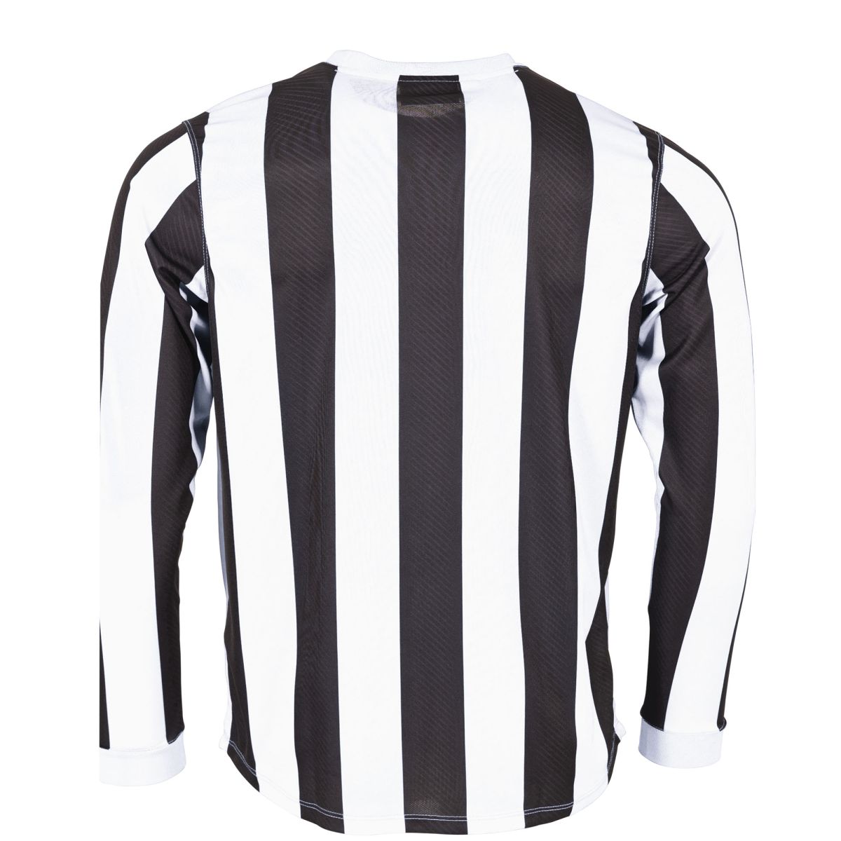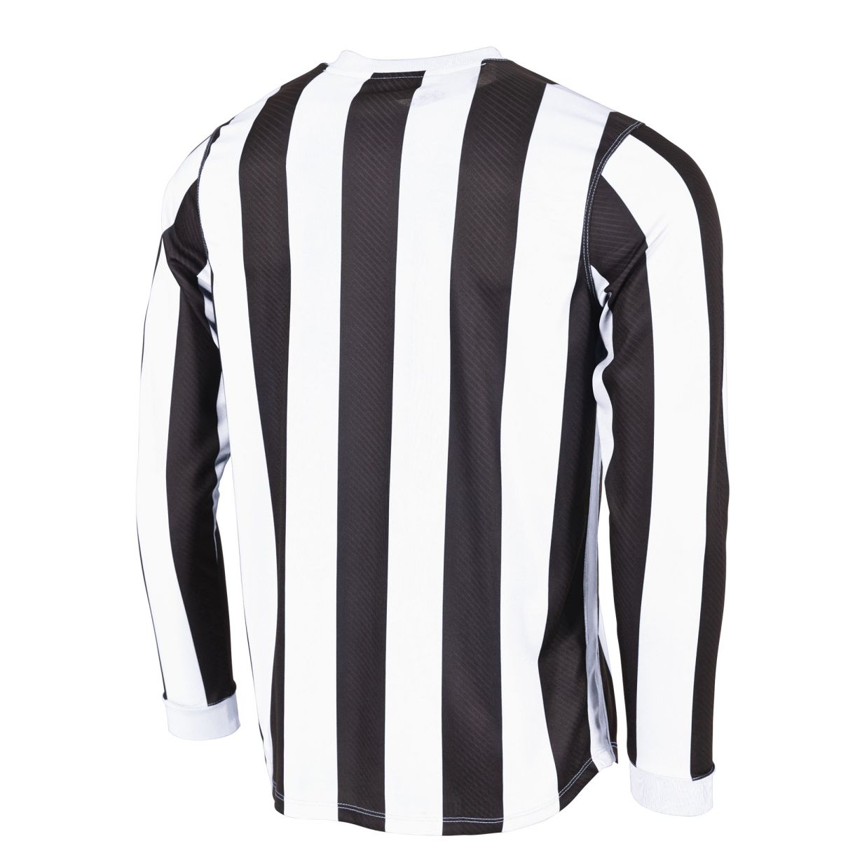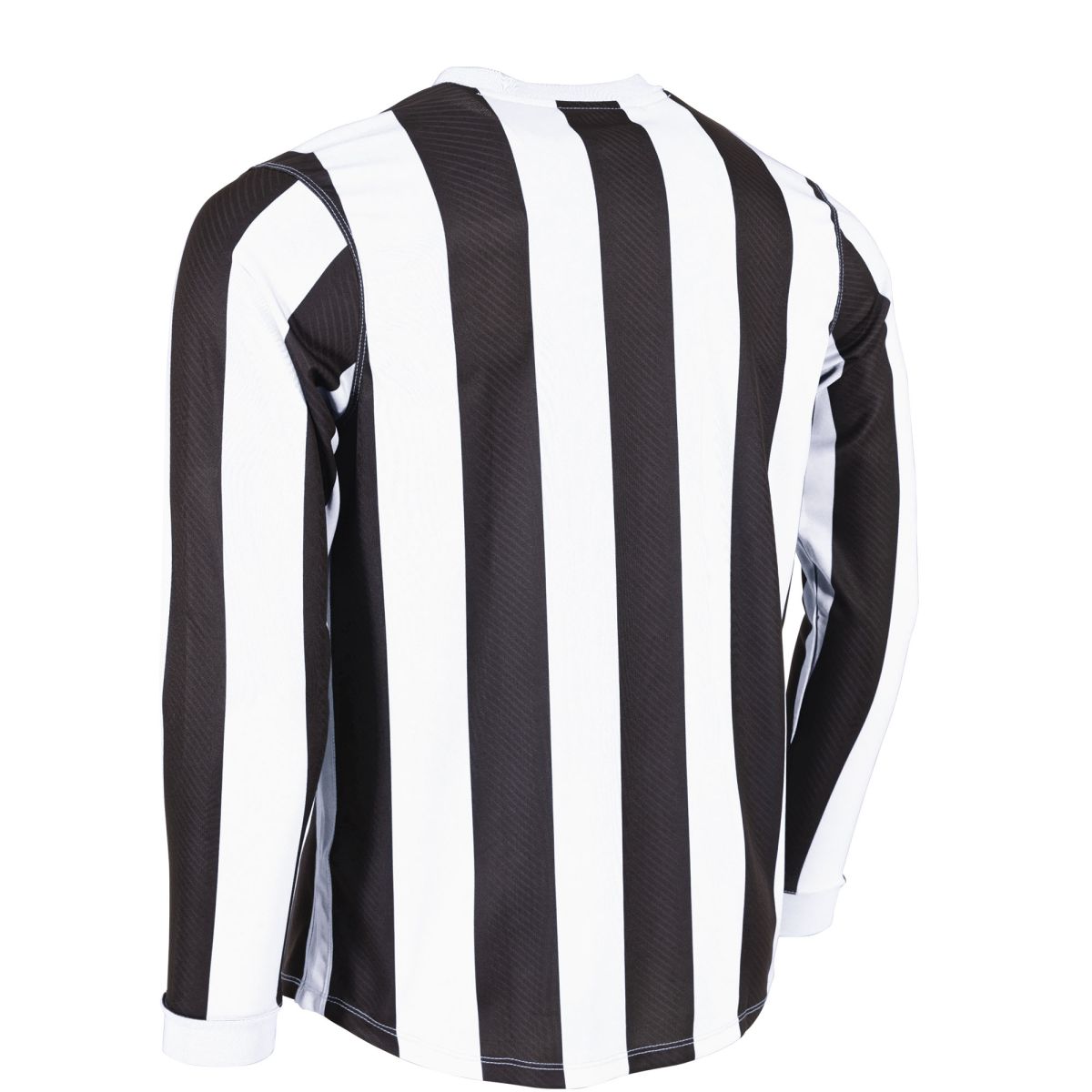 Das Stanno Aspire Langarm Trikot besteht aus 100% recyceltem Polyester mit ClimaTec-Finish und verfügt über ein sublimiertes Muster mit vertikalen Streifen. Auf der Vorderseite des Trikots befindet sich eine 20cm hohe Sponsorenfläche. Das Trikot verfügt über Stanno-Logos und eine Mesh-Struktur, die für einen optimalen Feuchtigkeitstransport sorgt. Das Shirt hat lange Ärmel mit Rippbündchen und doppelte Nähte, die es extra widerstandsfähig machen.