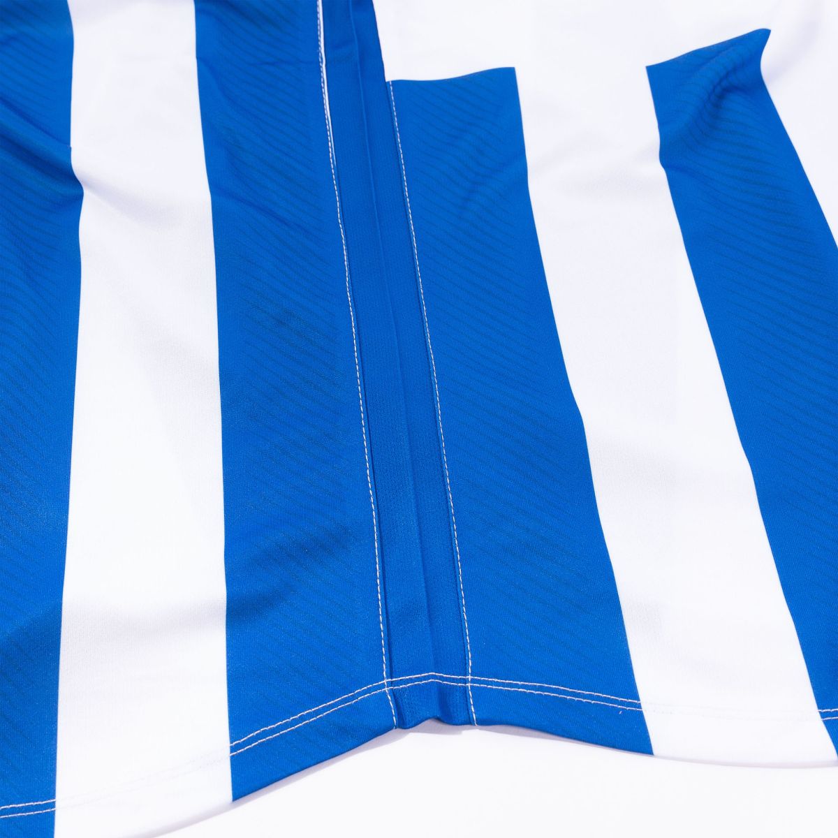 Dieses Stanno Aspire Trikot besteht aus 100% recyceltem Polyester mit ClimaTec-Finish und verfügt über ein sublimiertes Muster mit vertikalen Streifen. Auf der Vorderseite des Trikots befindet sich eine 20 cm hohe Sponsorenfläche. Das Shirt verfügt über Stanno-Logos und eine Mesh-Struktur, die für einen optimalen Feuchtigkeitstransport sorgt. Das Trikot hat zudem doppelte Nähte, die das Trikot extra widerstandsfähig machen.