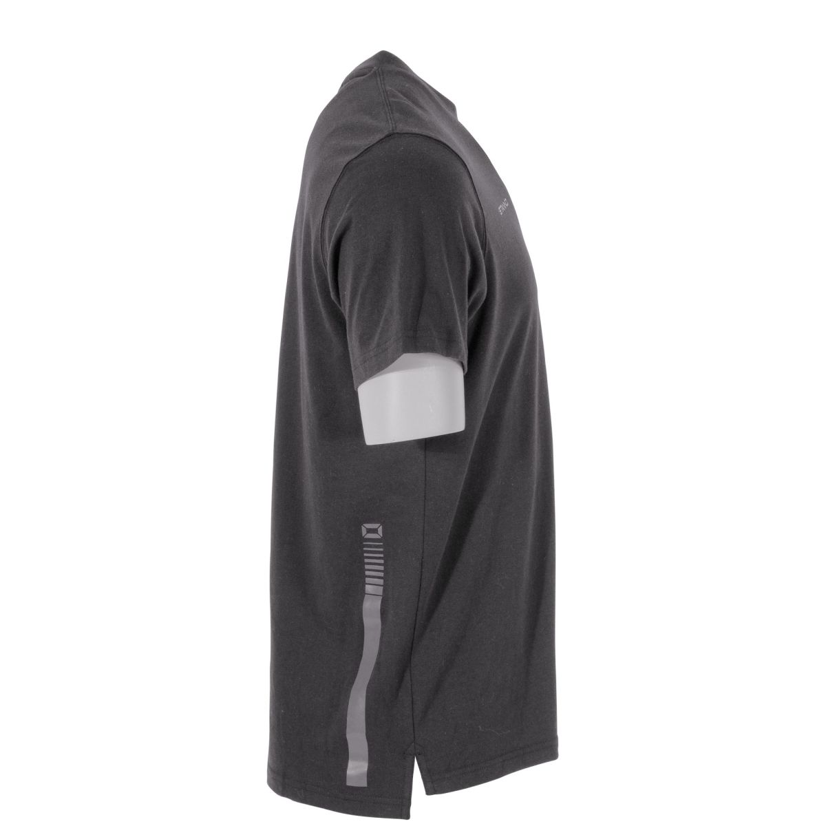 Dieses Shirt besteht aus einem Materialmix aus Baumwolle (60%) und Polyester (40%). Der Rundhalsausschnitt ist aus elastischem gerippetn Material und eignet sich sowohl für den Sport als auch für den Freizeiteinsatz. Der tonale Print auf dem Rücken und der rechten Brust macht das Shirt komplett!