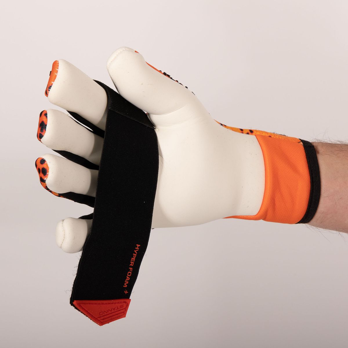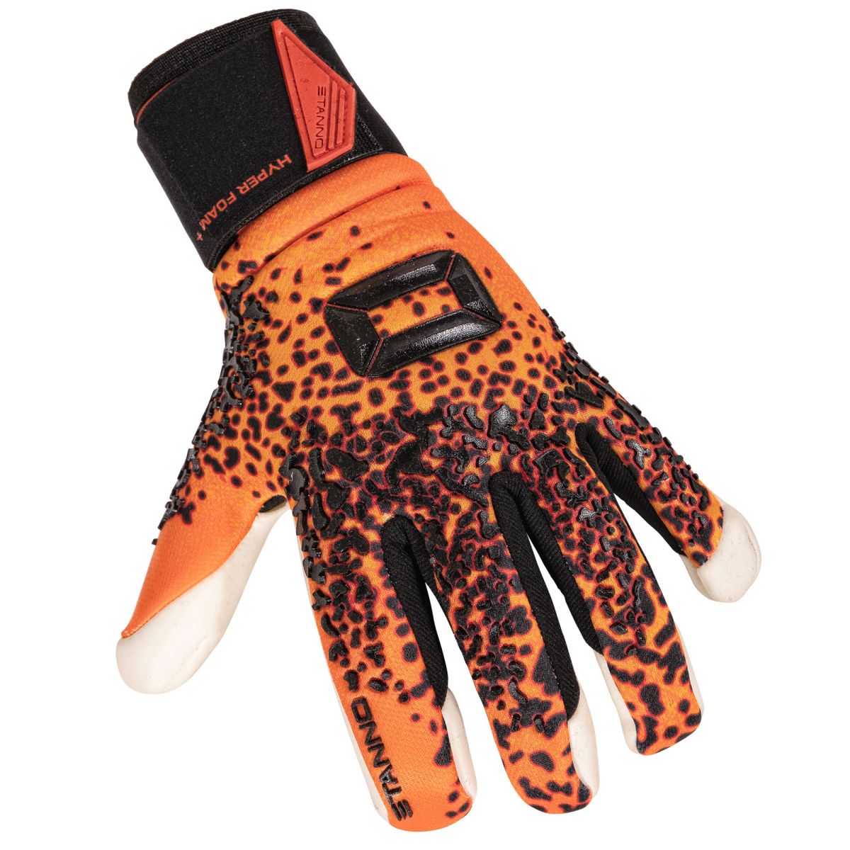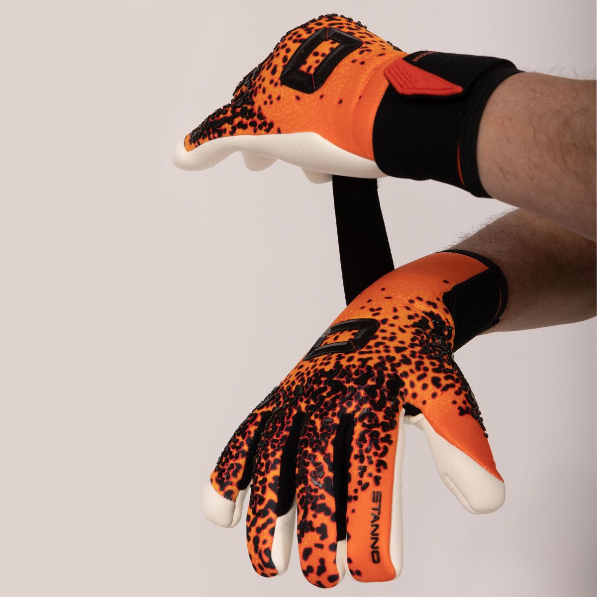 Die Blaze Torwarthandschuhe sind die absoluten Spitzenhandschuhe von Stanno. Sie haben eine extra große Schaumstoffoberfläche aus Hyper Foam Plus. Hyper Foam Plus ist ein ultra-weicher, dicker Schaumstoff, der sowohl bei trockenen als auch bei nassen Wetterbedingungen für noch mehr optimalen Grip sorgt. Die Handschuhe haben eine negativ genähte Rollfinger-Konstruktion am Daumen und kleinen Finger. Auf diese Weise sitzen die Handschuhe perfekt an der Hand! Die Hand ist außerdem vollständig von Schaumstoff umgeben. Die Schaumstoffoberfläche auf der Handinnenseite ist noch weiter vergrößert, wodurch die Fläche zum Fangen des Balls noch größer wird. Das Silikondesign an der Schlagzone und den Fingern sorgt für ein kontrollierteres Fausten des Balles. Das One Piece Fit Design garantiert zudem eine optimale Passform um die Oberhand. Die Verwendung eines Handgelenkbandes ist optional. Deshalb sind die Blaze Torwarthandschuhe mit einem abnehmbaren, elastischen Armband ausgestattet, das sich z.B. ideal zum Aufdrucken Deines Namens eignet.Veredelung: Bestickung, Bedruckung, BeflockungFarbe: Orange