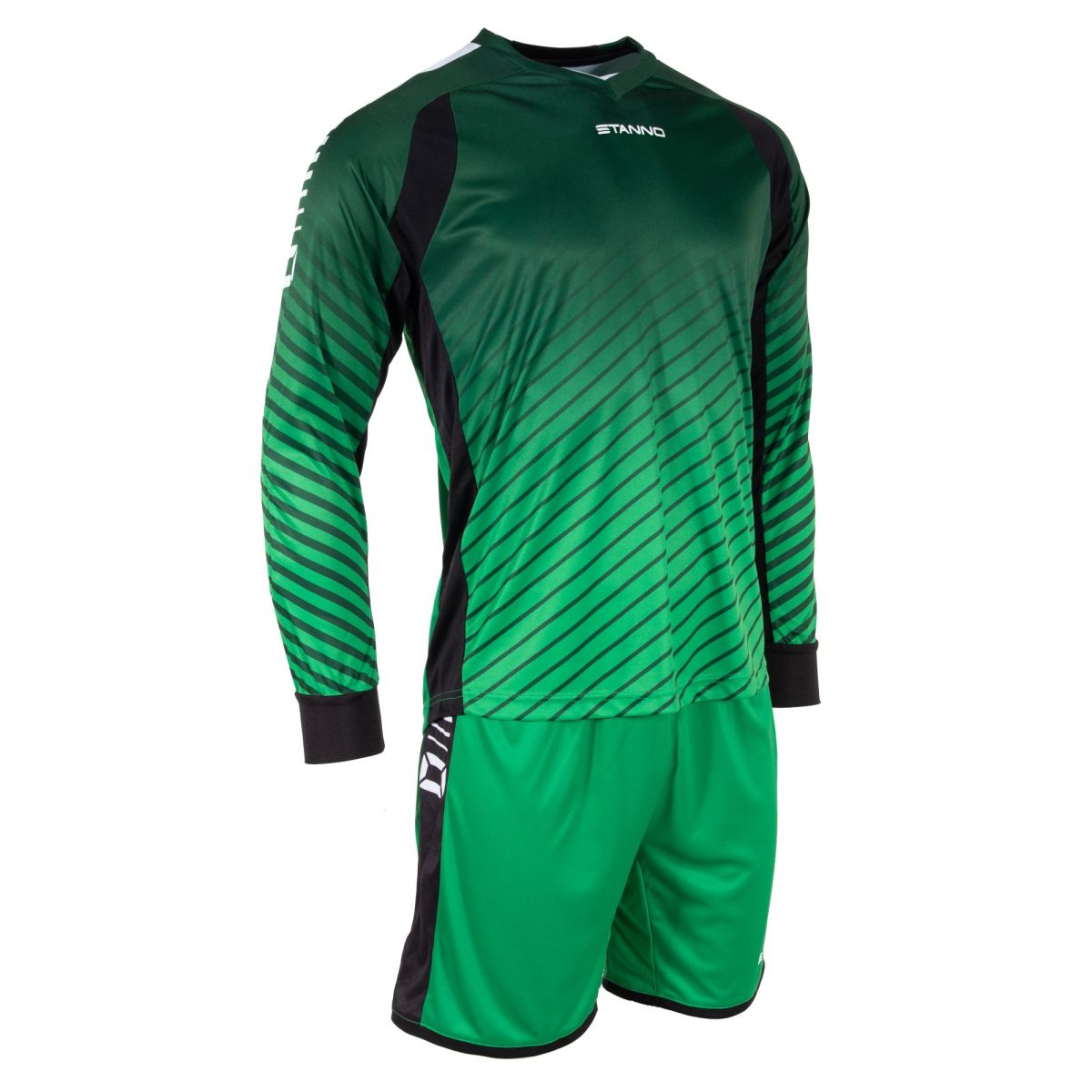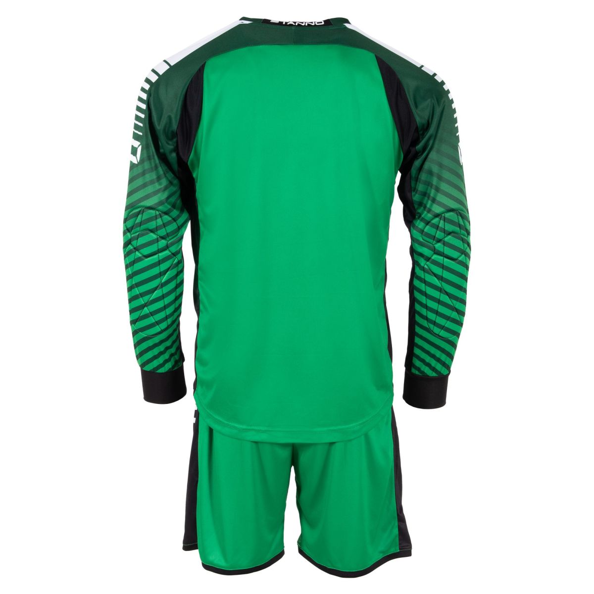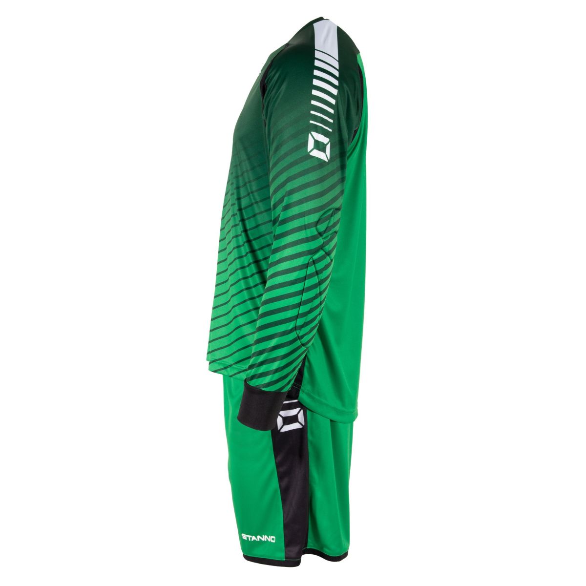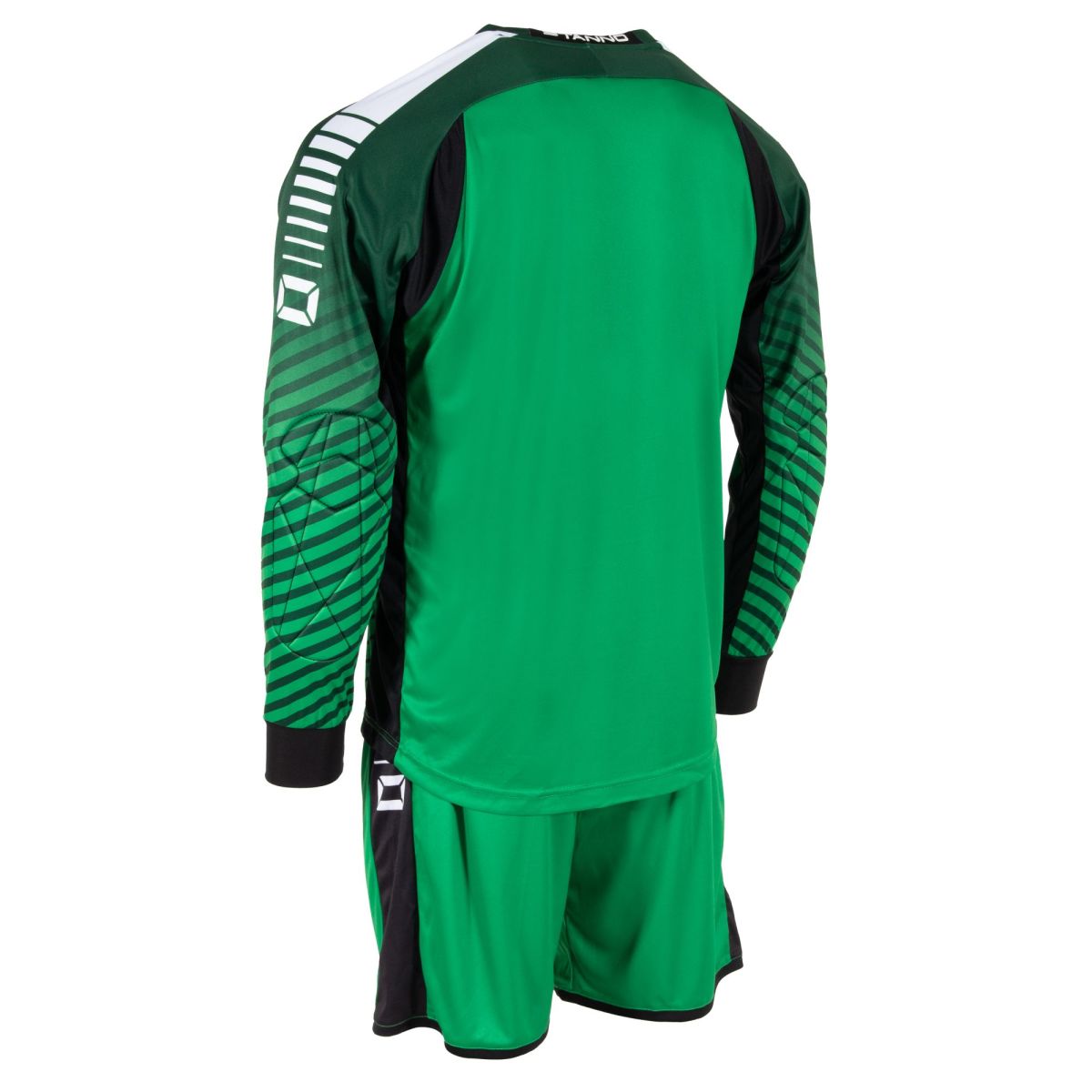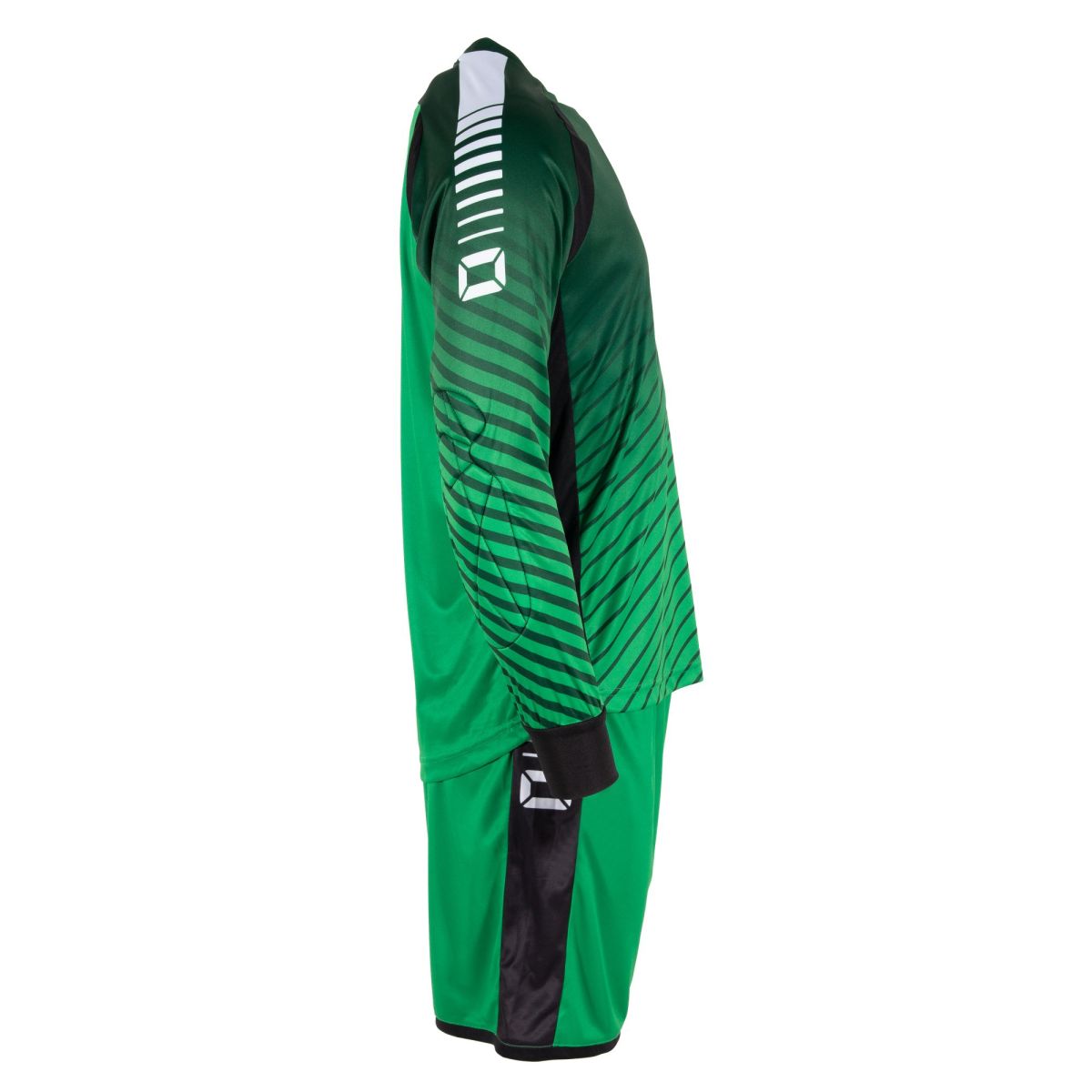 Dieses Torwartset von Stanno, mit sublimiertem Streifenprint auf dem Hemd, hat eine schützende Polsterung an den Ellenbogen. Der V-Ausschnitt ist aus Körpermaterial gefertigt, was dank der ClimaTec finish eine optimale Schweißabfuhr gewährleistet. Die eingearbeiteten Manschetten sind aus elastischem Rippenmaterial gefertigt. Die passende Shorts hat einen inneren und einen elastischen Bund mit Kordelzug.