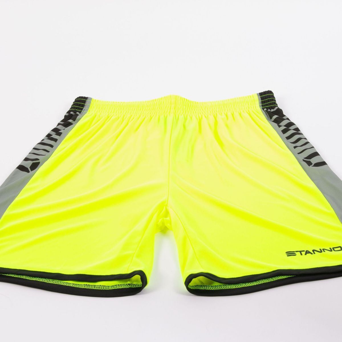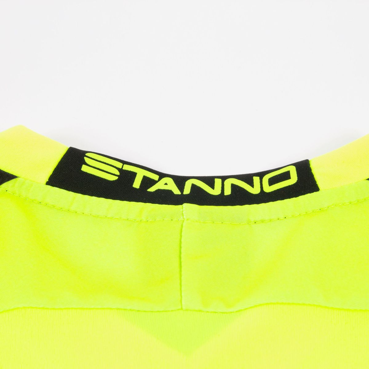 Dieses Torwartset von Stanno, mit sublimiertem Streifenprint auf dem Hemd, hat eine schützende Polsterung an den Ellenbogen. Der V-Ausschnitt ist aus Körpermaterial gefertigt, was dank der ClimaTec finish eine optimale Schweißabfuhr gewährleistet. Die eingearbeiteten Manschetten sind aus elastischem Rippenmaterial gefertigt. Die passende Shorts hat einen inneren und einen elastischen Bund mit Kordelzug.Veredelung: Bestickung, Bedruckung, Beflockung