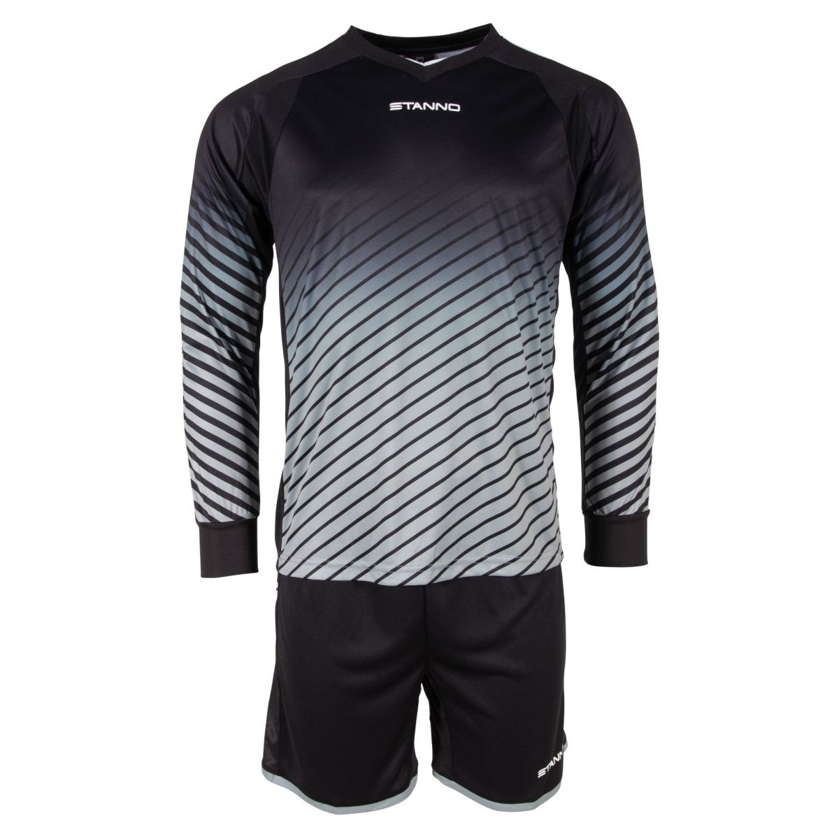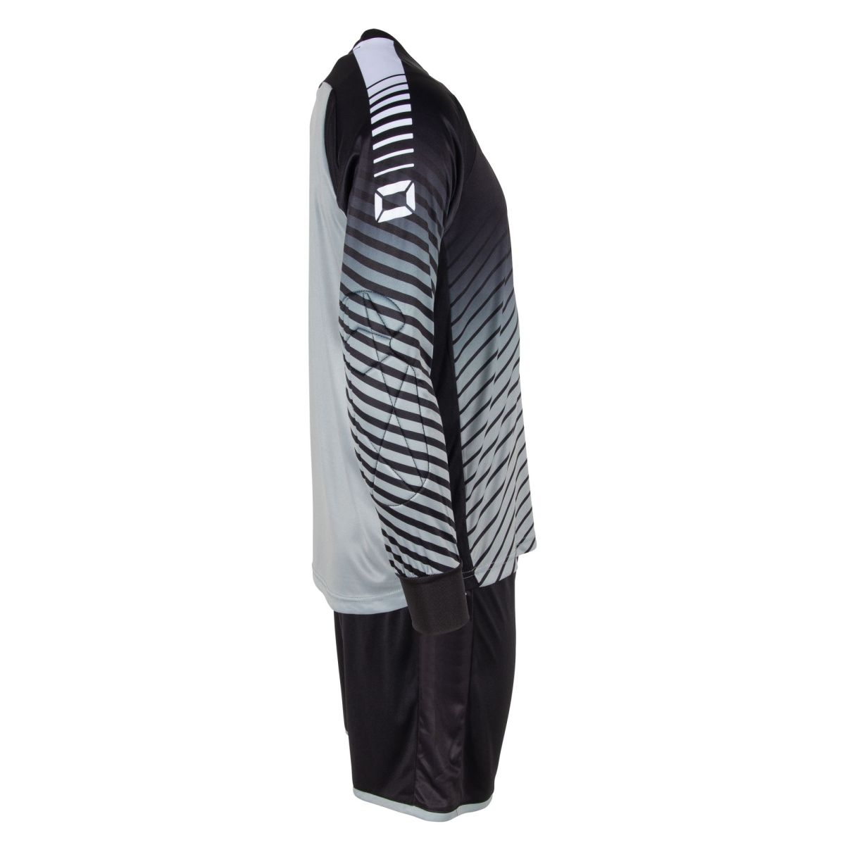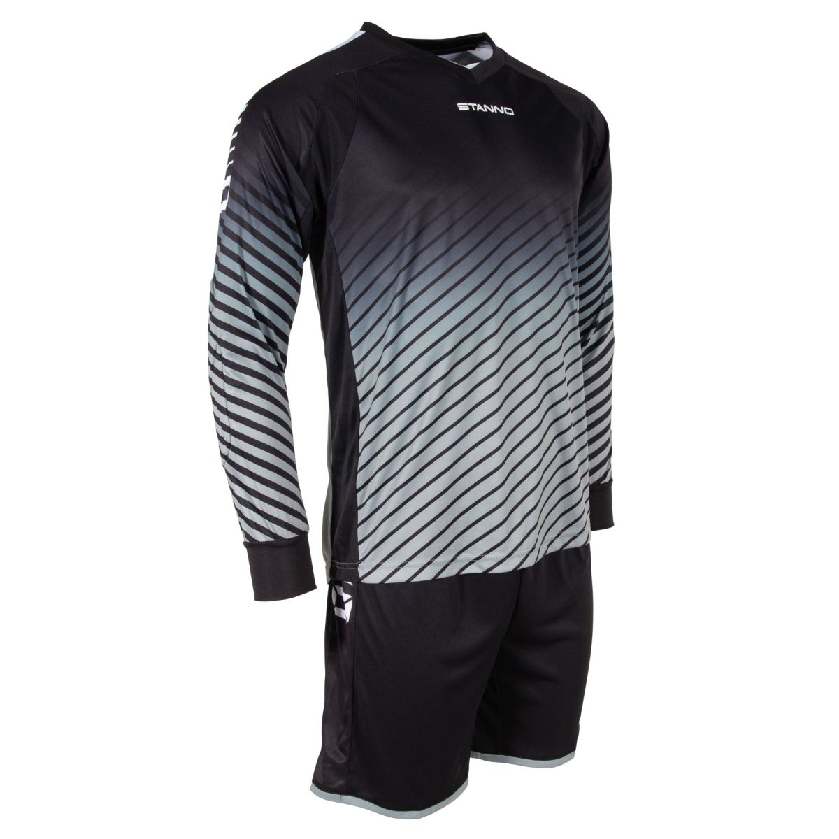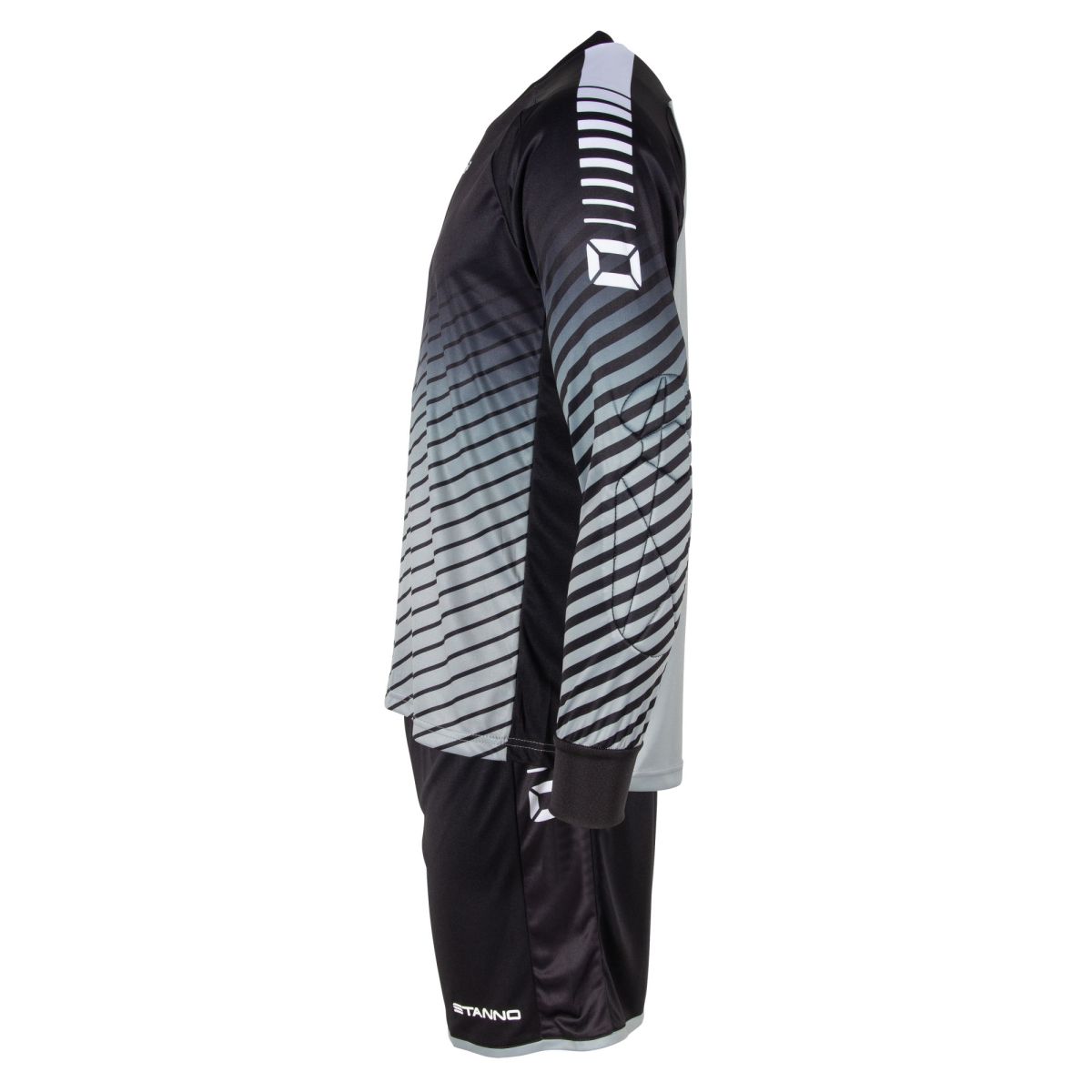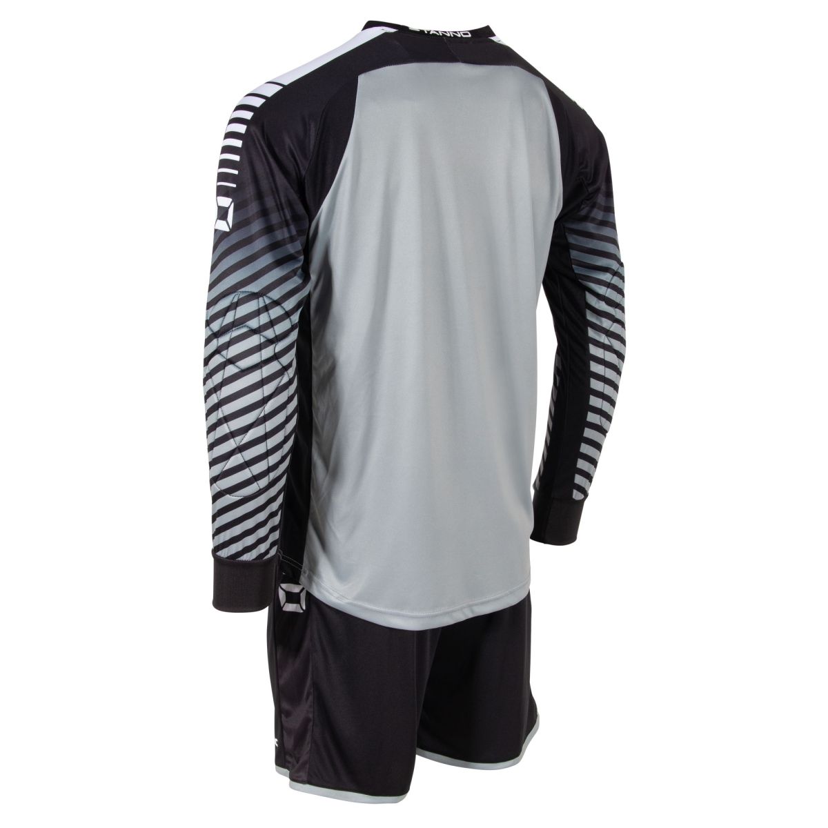 Dieses Torwartset von Stanno, mit sublimiertem Streifenprint auf dem Hemd, hat eine schützende Polsterung an den Ellenbogen. Der V-Ausschnitt ist aus Körpermaterial gefertigt, was dank der ClimaTec finish eine optimale Schweißabfuhr gewährleistet. Die eingearbeiteten Manschetten sind aus elastischem Rippenmaterial gefertigt. Die passende Shorts hat einen inneren und einen elastischen Bund mit Kordelzug.