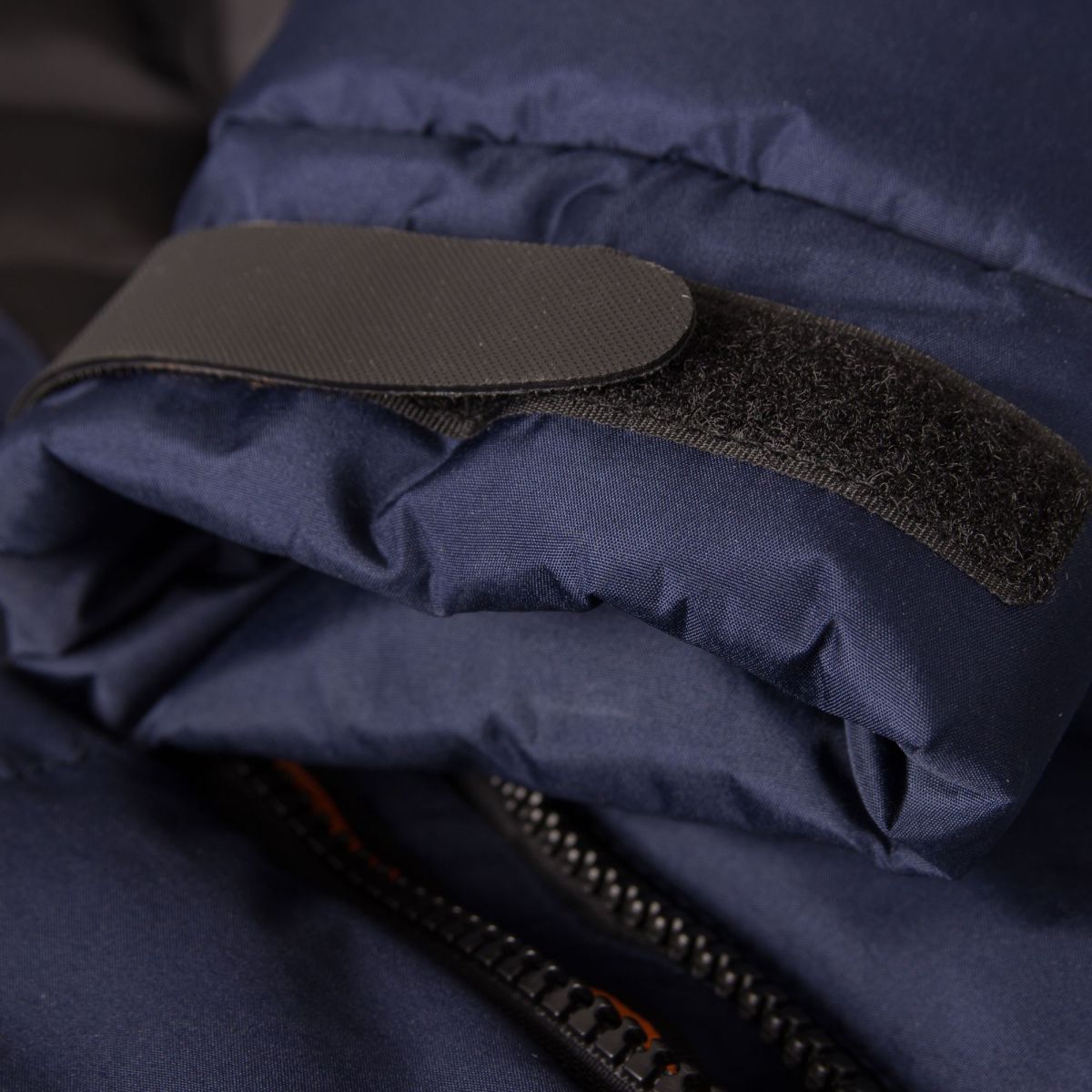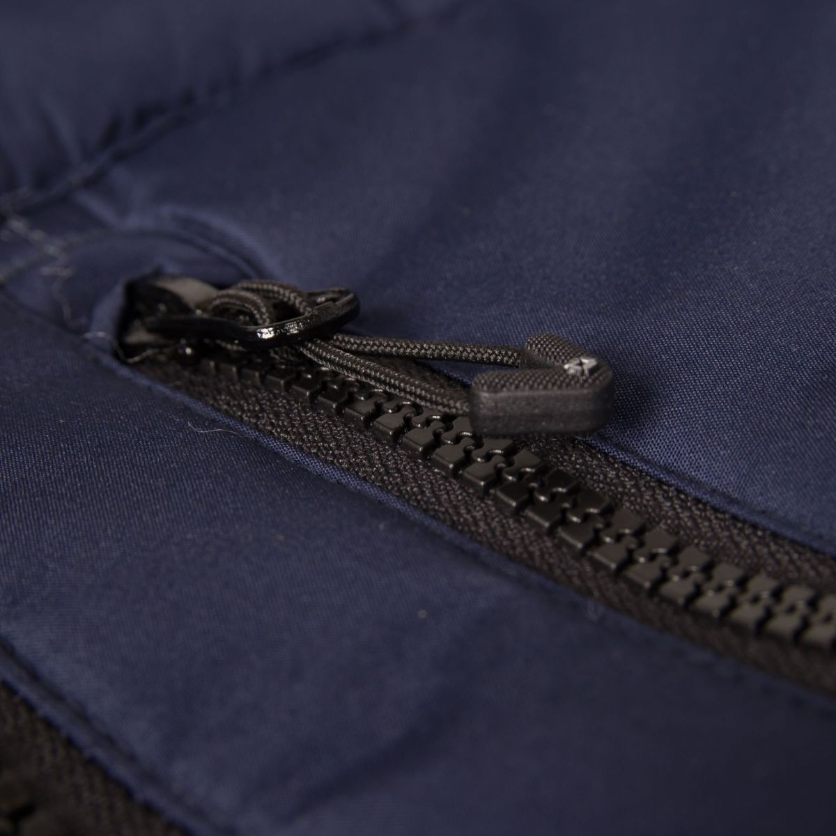 Diese Jacke (100 % Polyester Ripstop) ist mit einer Spezialbeschichtung versehen, wodurch die Jacke wasserabweisen und winddicht ist. An der Innenseite ist sie wattiert, wodurch Sie warm bleiben. An Schultern, Kapuze und Seiten ist sie mit wasserabweisendem Canvas-Gewebe versehen. Die Sturmbündchen und Klettverschlüssen an den Ärmeln schützen vor eisigem Wind. An der Vorderseite befinden sich ein hochwertiger SBS-Reißverschluss sowie zwei Eingrifftaschen mit Reißverschluss und eine Brusttasche mit Reißverschluss.Veredelung: Bestickung, Bedruckung, BeflockungFarbe: Marine