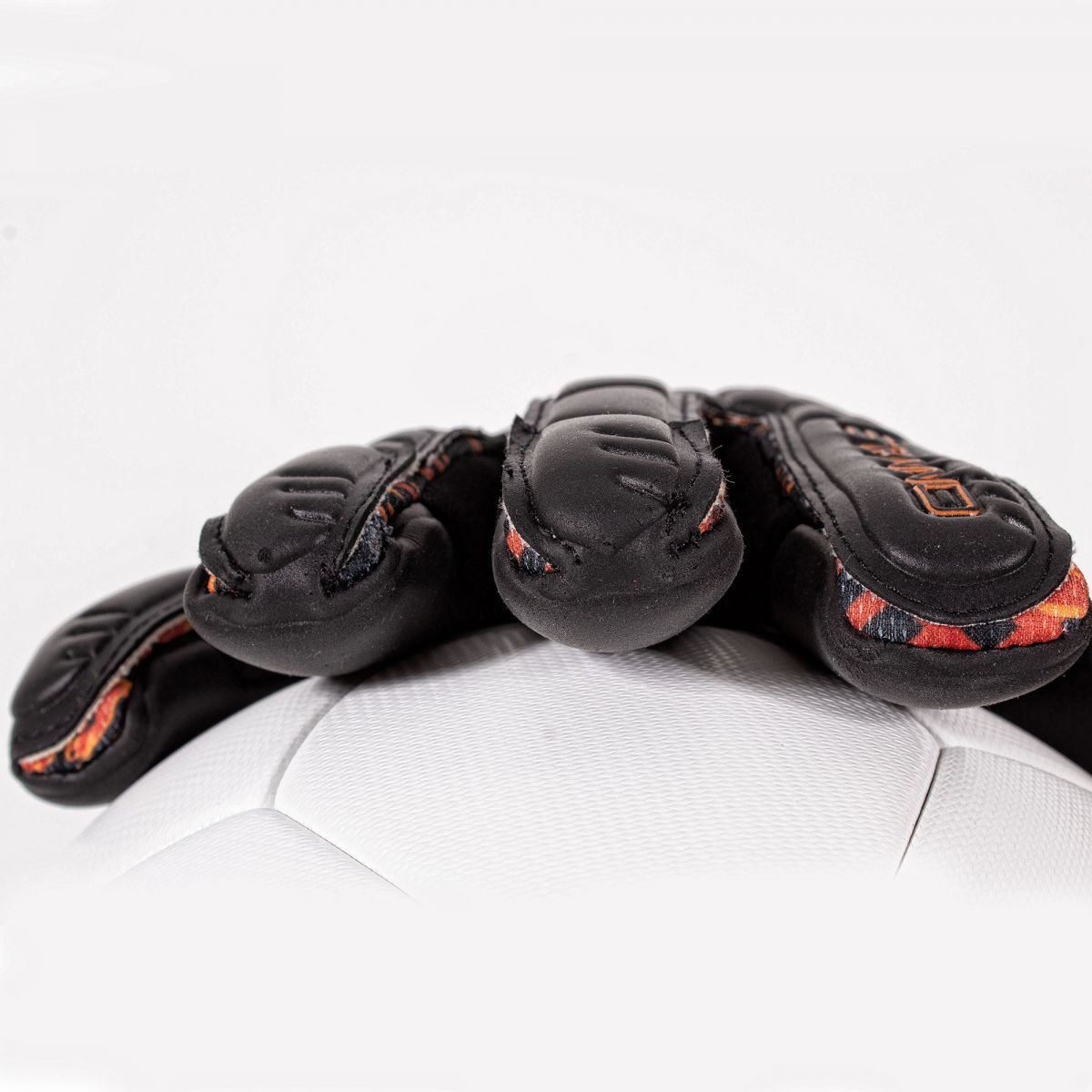 Der Claw ist ein Senior Torwarthandschuh von Stanno mit Hyper Foam. Der Hyper Foam zeichnet sich durch sein hohes Aufnahmevermögen aus, was den Grip stark verbessert. Bei trockenem Wetter muss der Keeper die Handschuhe während des Spiels oder Trainings nicht befeuchten, bei nassem Wetter behält der Handschuh den hervorragenden Grip. Hyper Foam garantiert zudem optimalen Tragekomfort und erhöht die Ballkontrolle durch die hervorragende Schlagdämpfung. Mittel- und Ringfinger werden für eine noch größere Schaumfläche über die Fingerkuppe gerollt. Dieses Modell ist ein Hybrid mit einer Kombination aus Rollfinger- und Flathand-Negativfingern. Die Naht befindet sich auf der Innenseite. Das One Piece Fit Design (OPF) garantiert zudem eine optimale Verbindung um die Oberhand. Der Handschuh liegt so gut in der Hand, dass die Verwendung einer Handschlaufe optional ist. Deshalb ist der Claw mit einem abnehmbaren, elastischen Flachband ausgestattet (kann z.B. mit Ihrem Namen bedruckt werden).