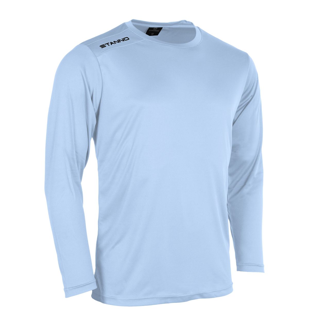 Das Stanno Field Trikot Langarm ist ein klassisches, unifarbenes Rundhals-Shirt in ClimaTec Qualität, für einen optimalen Feuchtigkeitstransport. Field Trikot Langarm hat an der rechten Schulter einen kleinen Einsatz mit einem gedruckten Stanno-Schriftzug.