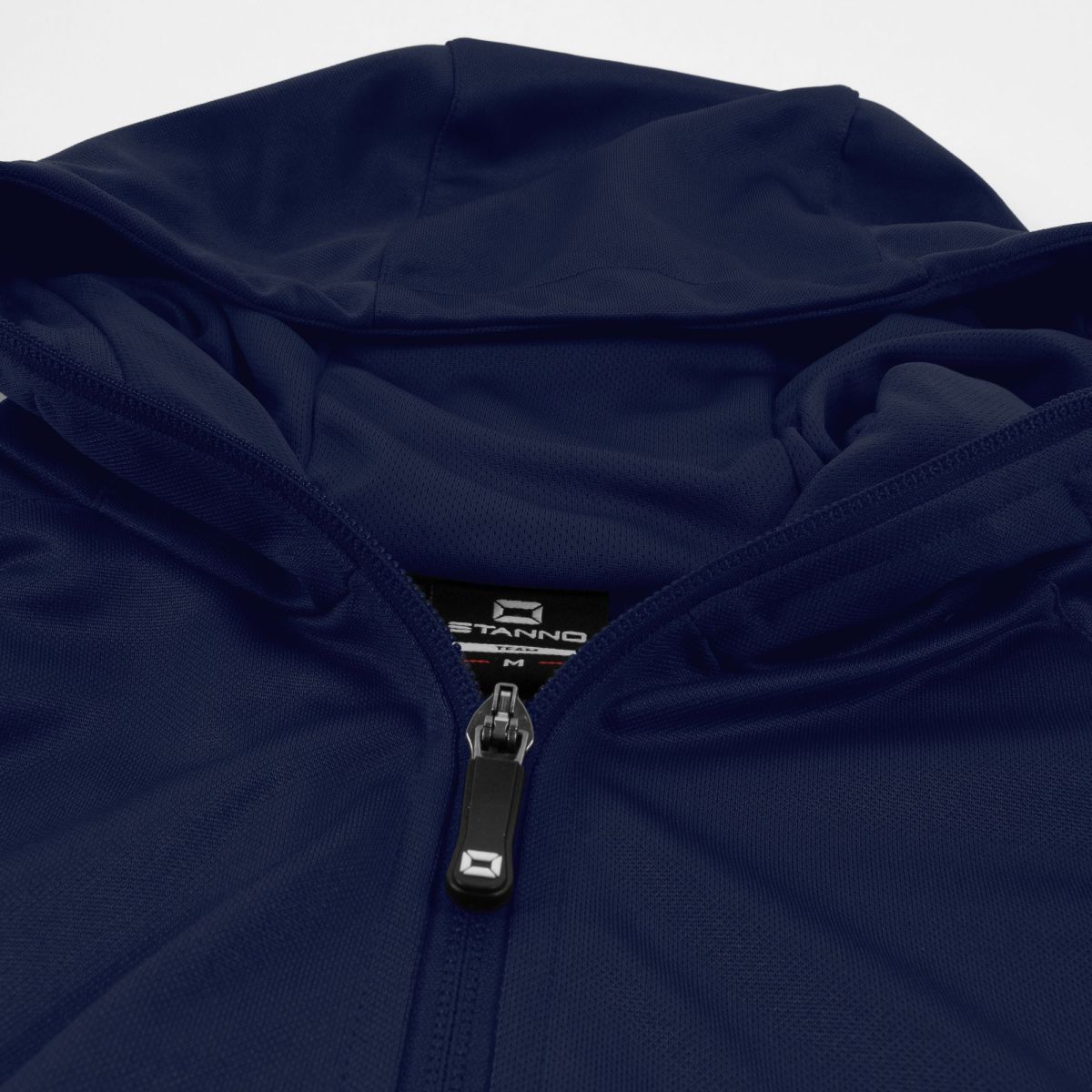 Dieses Top mit Reißverschluss von Stanno besteht zu 100 % aus recyceltem Polyester. Dieses Oberteil trägst du vor oder nach dem Sport oder während des Aufwärmens, damit deine Muskeln warm bleiben. Das Oberteil hat Mesh-Einsätze und ein Raglanärmeleinsatz sorgt für ausreichend Bewegungsfreiheit. Nicht nur der Stoff ist aus recyceltem Material, auch die Reißverschlüsse an der Front und die Seitentaschen sind recycelte SBS-Reißverschlüsse. Eine weitere schöne Sache an diesem Top sind die Daumenlöcher für ein angenehmes Tragegefühl. Die aufgedruckten Stanno-Logos vervollständigen dieses Top. Das Oberteil eignet sich für Mannschaftssport und zur Präsentation.