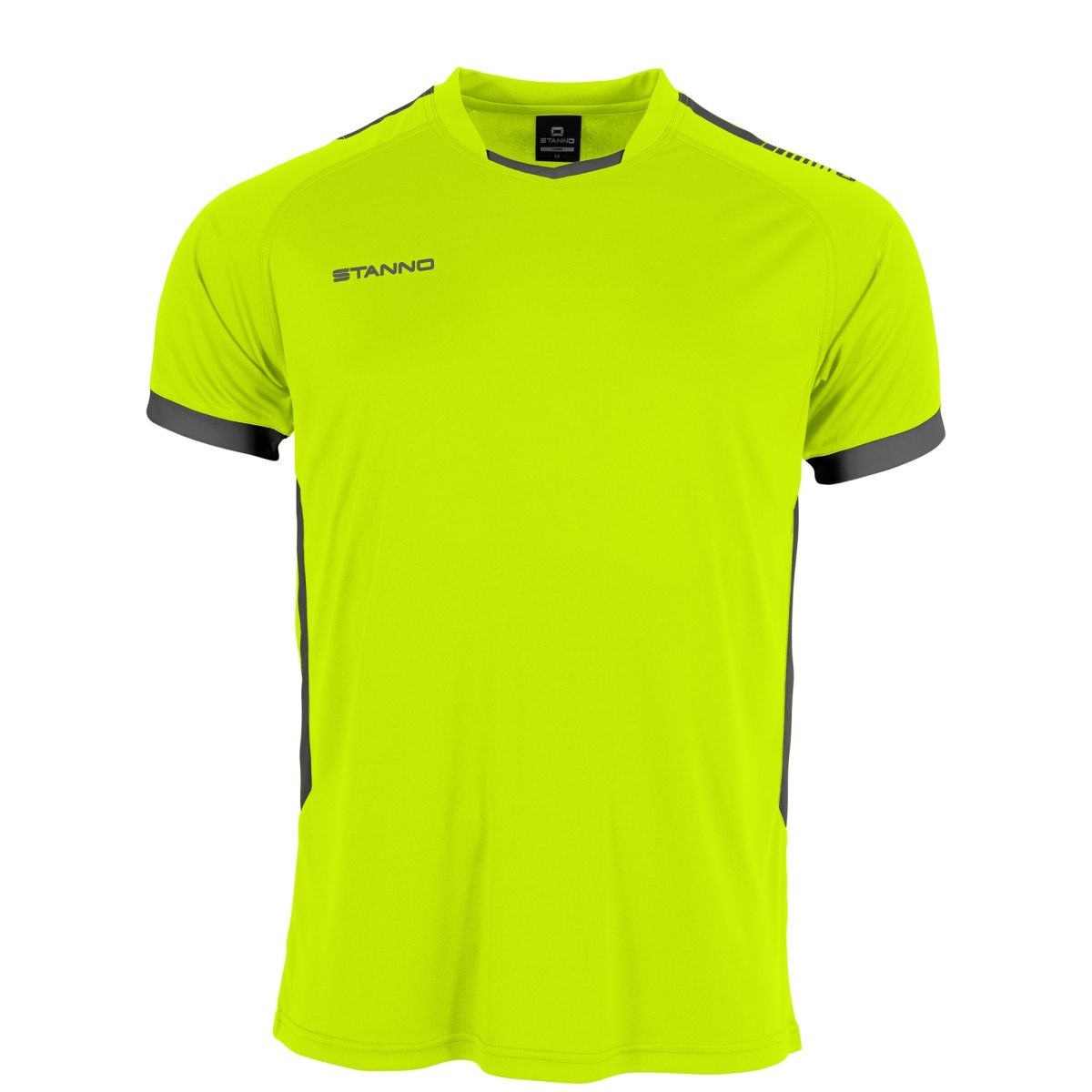 Dieses First Shirt mit V-Ausschnitt von Stanno besteht zu 100 % aus recyceltem Polyester. Das Shirt ist schnell trocknend und hat ein ClimaTec-Finish, das für optimalen Schweißtransport sorgt. Das Shirt fühlt sich weich an und der Raglanärmeleinsatz bietet extra Bewegungsfreiheit. Das Shirt ist für zusätzliche Festigkeit an den Nähten komplett doppelt genäht, denn natürlich muss dieses Shirt auch auf dem Feld einiges aushalten. Die aufgedruckten Logos machen dieses Shirt zu einer stylischen Ergänzung Deiner Sportgarderobe. Das Shirt eignet sich als Wettkampfshirt, zur Präsentation und auch als Trainingsshirt.