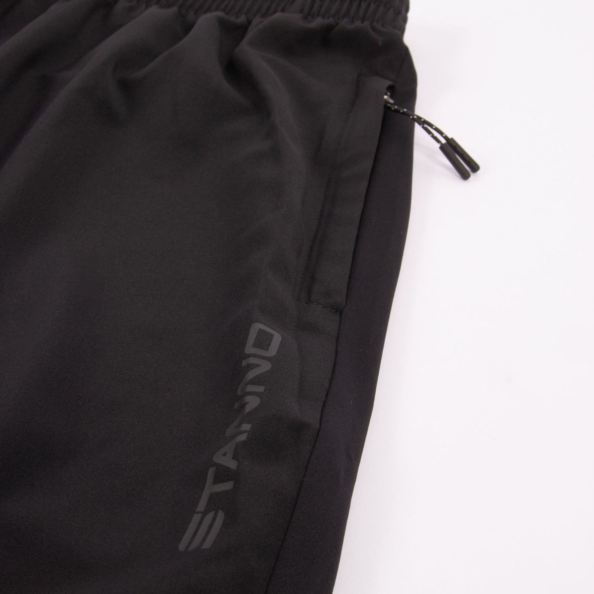 Die Stanno Functionals Flex Pant ist perfekt für Dein individuelles Training. Der Name sagt schon alles: Mit dieser Hose aus der Stanno Functionals-Kollektion kannst Du in alle Richtungen gehen, egal ob gemütlich oder intesiver Sport. Die Hose besteht hauptsächlich aus gewebtem Polyester, ist leicht dehnbar und mit Strickeinsätzen an der Innen- und Außenseite des Beins versehen: für optimalen Tragekomfort und Bewegungsfreiheit! Die Flex Pant hat eine tapered Passform und einen Strickverschluss um den Knöchel unten. Die Hose hat 2 Seitentaschen und einen rechten Gesäßtasche mit Reißverschluss, und ein Tailleband mit Kordeln um die Hose enger zu machen. Die Hose hat einen reflektierenden Aufdruck auf den Waden.Veredelung: Bestickung, Bedruckung, BeflockungFarbe: Schwarz