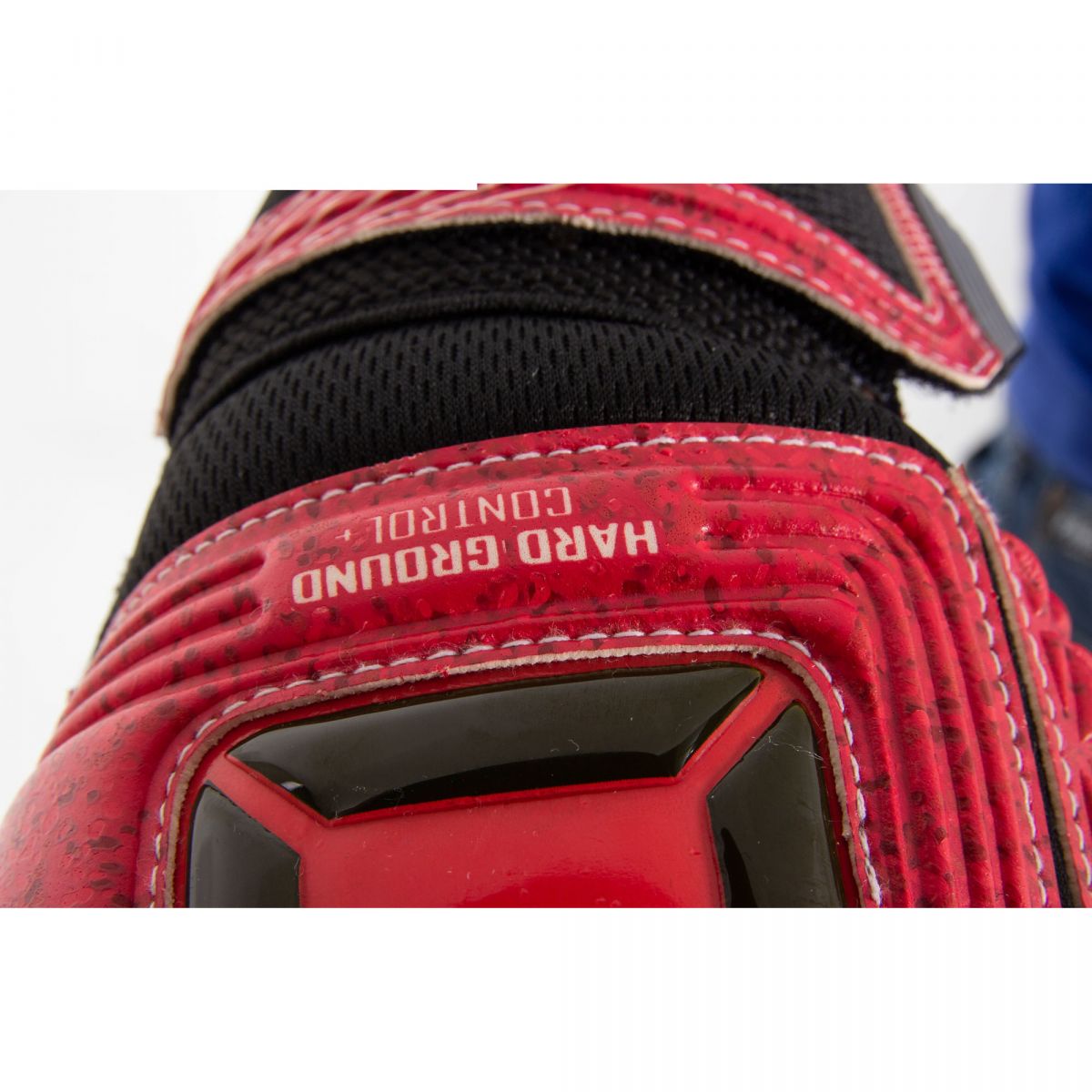 Der Hardground RFH III (Flachhand, positiv genäht) dankt seinen Namen dem Gummieinsatz, der die Handinnenfläche verstärkt und hierdurch auch die Lebensdauer des Handschuhs verlängert. Dies macht ihn zu einem idealen Handschuh für Kunstrasen und Hartflächen. Der Soft Foam Schamstoff bietet zuverlässigen Grip und ausgezeichnete Dämpfung und garantiert darüber hinaus maximale Ballkontrolle und optimalen Tragekomfort. Durch das Rollfingersystem wird der Finger vollständig mit nahtlosem Schaumstoff umhüllt. Die dadurch vergrößerte Schaumstofffläche sorgt für besseren Grip beim Umgang mit dem Ball. Der Handschuh hat einen Neopreneinsatz an der Oberseite für eine perfekte und flexible Passform und für mehr Bewegungsfreiheit einen elastischen Einsatz am Daumen. Auf dem Bündchen ist Platz für beispielsweise einen Namensaufdruck.