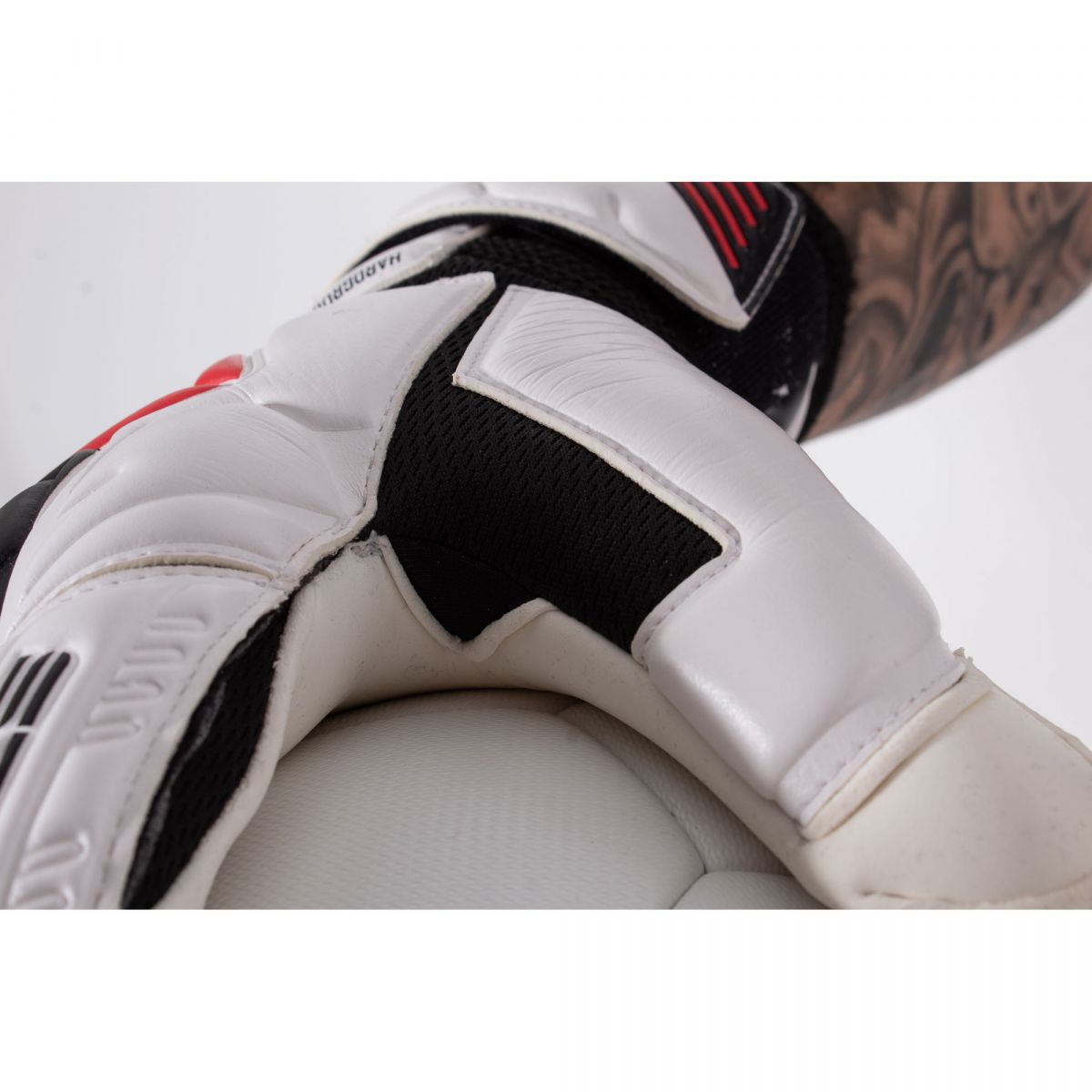 Der Hardground RFH (Flat Hand, Positive Stitching) verdankt seinen Namen dem Gummipatch, der die Innenhand verstärkt und somit die Lebensdauer des Handschuhs verlängert. Dadurch ist der Handschuh ideal auf Kunstrasen und harten Oberflächen. Der weiche Schaumstoff bietet zuverlässigen Halt und hervorragende Dämpfung. Weicher Schaumstoff garantiert zudem maximale Ballkontrolle und optimalen Tragekomfort. Dank des Rollfinger-Systems ist der Finger komplett von Schaumstoff umgeben, ohne Nähte. Die so entstandene vergrößerte Schaumoberfläche sorgt für besseren Halt am Ball. Der Handschuh hat einen Neopreneinsatz am Obermaterial für eine perfekte und flexible Passform und einen elastischen Einsatz am Daumen für mehr Bewegungsfreiheit.Veredelung: Bestickung, Bedruckung, BeflockungFarbe: Weiß