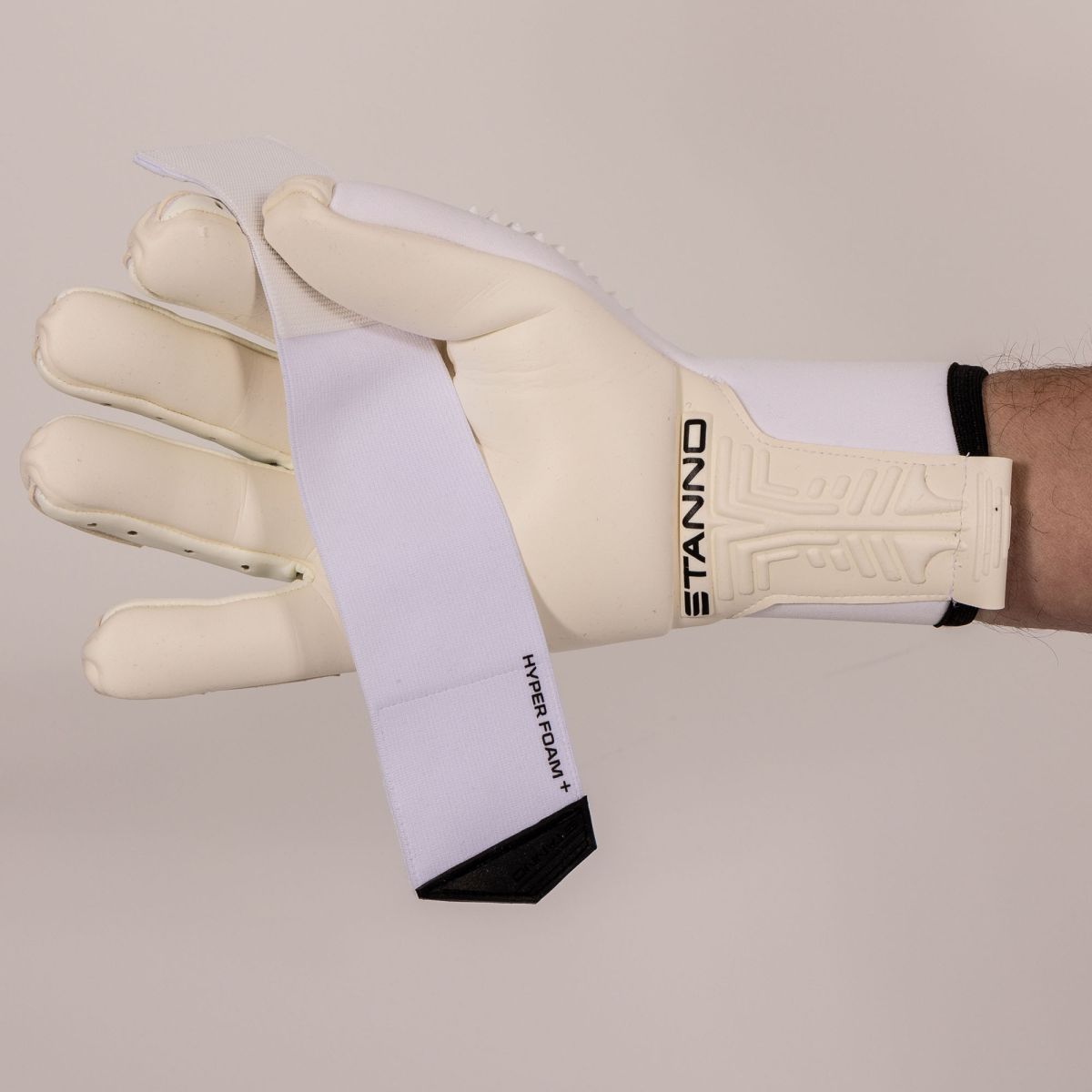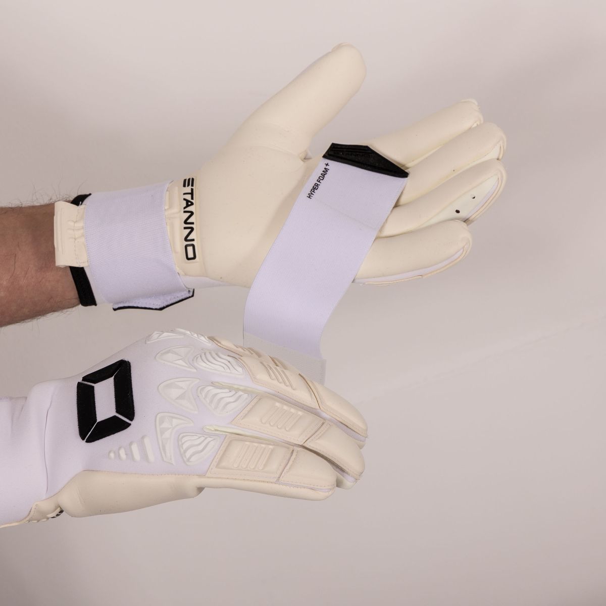 Die Mighty Torwarthandschuhe sind mit einer extra großen Schaumstoffoberfläche aus Hyper Foam Plus ausgestattet. Hyper Foam Plus ist ein ultra-weicher, dicker Schaumstoff, der sowohl bei trockenen als auch bei nassen Wetterbedingungen für noch mehr optimalen Grip sorgt. Der Handschuh hat ein Neopren-Obermaterial, das für zusätzliche Festigkeit sorgt. Auf diese Weise bist Du noch sicherer im Tor! Der Handschuh hat eine RFH-Negativpassform, bei der die Nähte an den Innenseiten der Finger mit dem Rollfingersystem kombiniert sind. Der Handschuh sitzt dadurch enger um die Finger, ist aber auch komplett von Schaumstoff umgeben. Die Schaumstoffoberfläche auf der Handinnenseite wird noch weiter vergrößert. Dadurch wird die Fläche zum Fangen des Balls noch größer. Das Silikondesign an der Schlagzone und den Fingern sorgt für ein noch kontrollierteres Fausten des Balles. Das One Piece Fit Design garantiert zudem eine optimale Passform um die Oberhand. Die Verwendung eines Handgelenkbandes ist optional. Deshalb sind die Mighty Torwarthandschuhe mit einem abnehmbaren, elastischen Armband ausgestattet, das sich z.B. für einen Namensaufdruck eignet.Veredelung: Bestickung, Bedruckung, BeflockungFarbe: Weiß