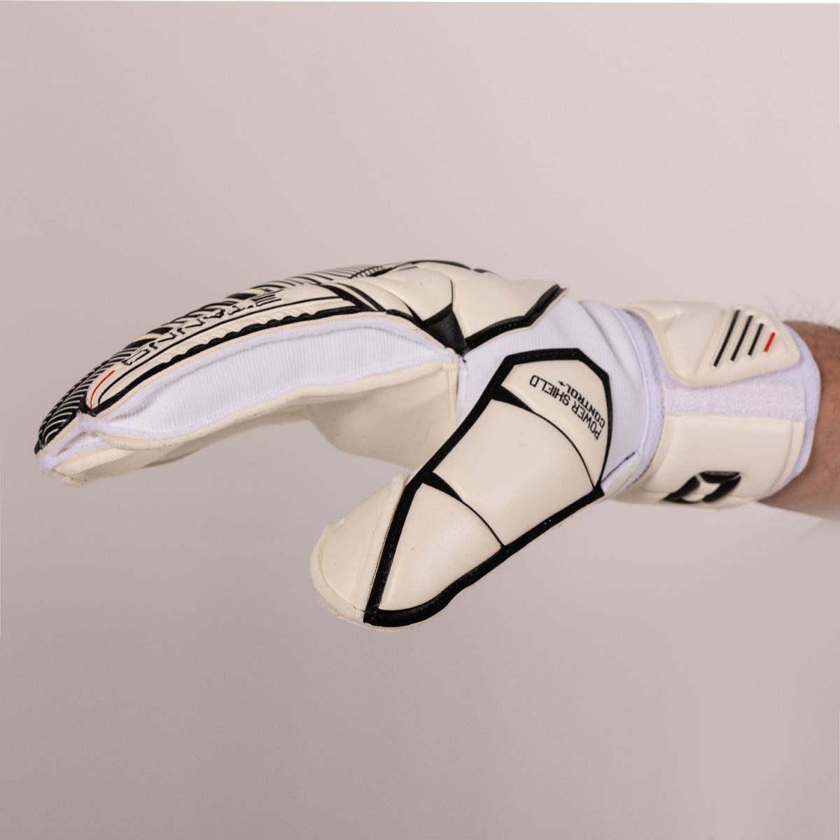 Die Power Shield V Torwarthandschuhe enthalten Soft Foam, für einen zuverlässigen Halt und eine komfortable Polsterung. Die Handschuhe verfügen zudem über Streifen, die Festigkeit und Stabilität garantieren. Die Handschuhe haben eine flache Hand und positive Nähte. Die Nähte befinden sich auf der Außenseite der Finger, so dass der Handschuh fest um die Finger schließt. Dies erhöht die Ballkontrolle.