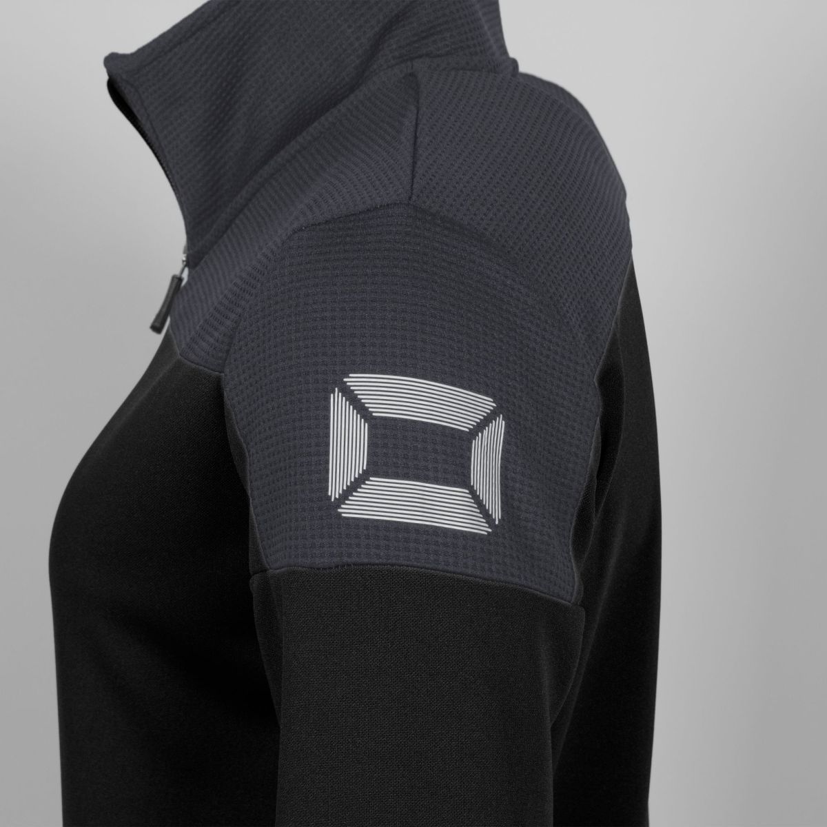 Hauptteil: 100% Polyester Single-Jersey (165 g/m²), Einsätze: 100 % Polyester Interlock (250 g/m²)Kurzer Reißverschluss am Ausschnitt mit StehkragenEinsätze in Kontrastfarbe an den Seiten und ÄrmelnUmgekehrter Nylon-Reißverschluss mit verriegelbarem SchieberKontrastfarbene Stretch-Einfassung an Ärmelbündchen und SaumVerdeckte Tasche in Teilungsnaht auf der rechten Seite (wie getragen)Neues, heraustrennbares ?Finden und Hales?-Etikett für einfaches RebrandingMaterial: 100% PolyesterGrammatur: 165 g/m² (Panels: 250 g/m²)Gewicht: 0.267Hergestellt nach: Faire ArbeitsbedingungenVeredelung: Bestickung, Bedruckung, Beflockung