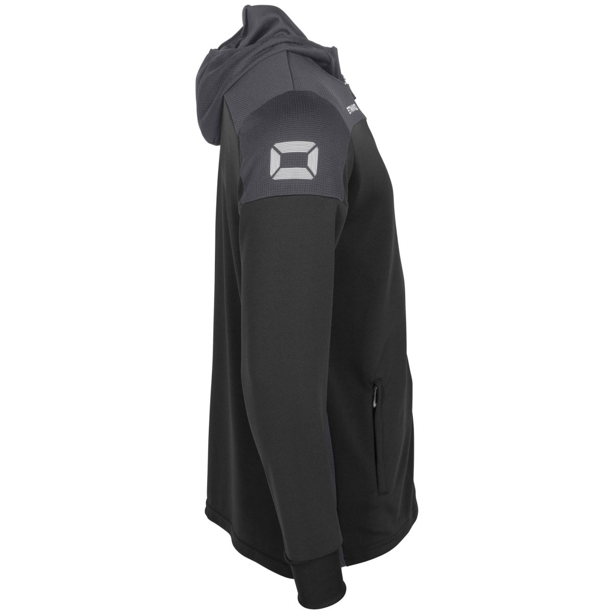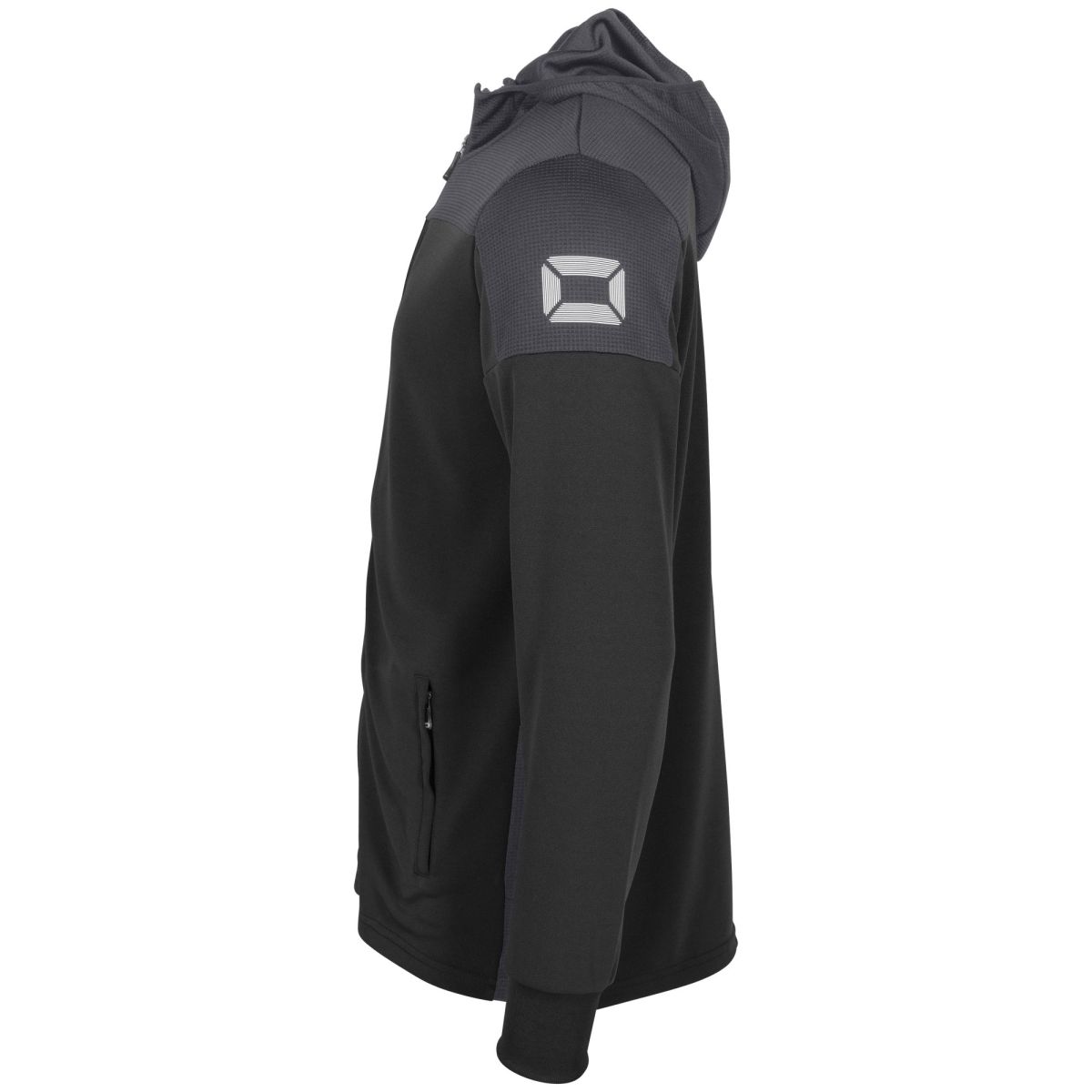 Schulterpartie hebt sich farblich abRaglan-SchnittKapuze mit Mesh-Futter und einem Kordelzug mit StoppernSeitentaschen mit ReißverschlüssenElastische Bündchen an Ärmeln und SaumDurchgängiger Front-ReißverschlussMaterial: 100% PolyesterGewicht: 0.379Hergestellt nach: Faire ArbeitsbedingungenVeredelung: Bestickung, Bedruckung, Beflockung