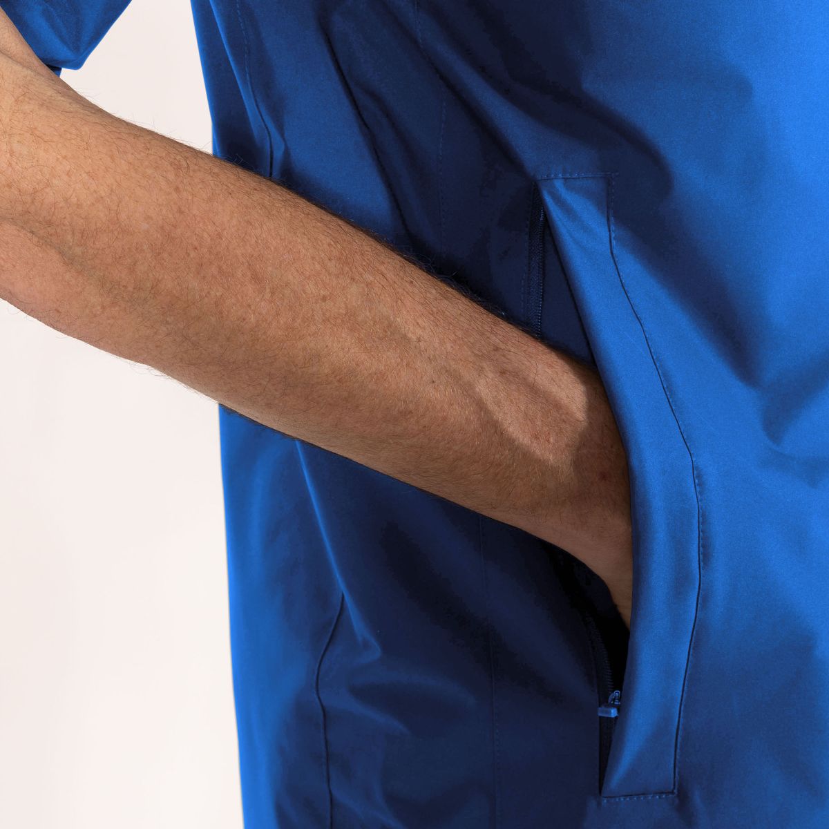 Die Prime Coachjacke besteht aus 100% Polyester mit PVC-Beschichtung und hat ein isolierendes Innenfutter. Die Jacke hat einen halblangen Schnitt mit einem längeren Rücken und verfügt über eine Frontklappe, die Dich vor Wind schützt. Diese wasser- und windabweisende Jacke verfügt zudem über Stanno-Logos auf Brust und Rücken. Der hochwertige SBS-Frontreißverschluss wird mit einer Sturmklappe mit Velcro-Klettverschluss und Druckknöpfen geschlossen. Auch die geräumigen Taschen werden mit SBS-Reißverschlüssen verschlossen.